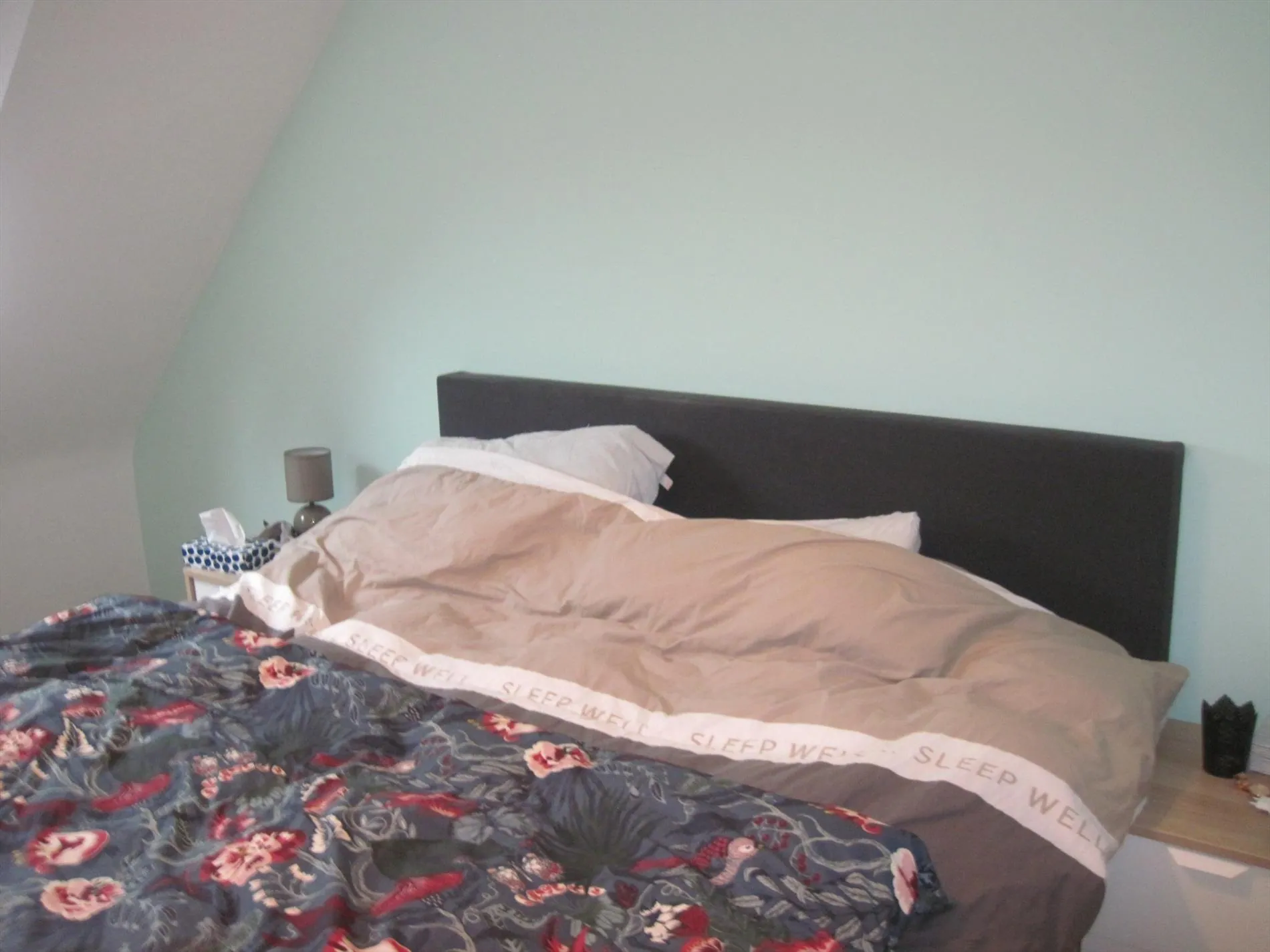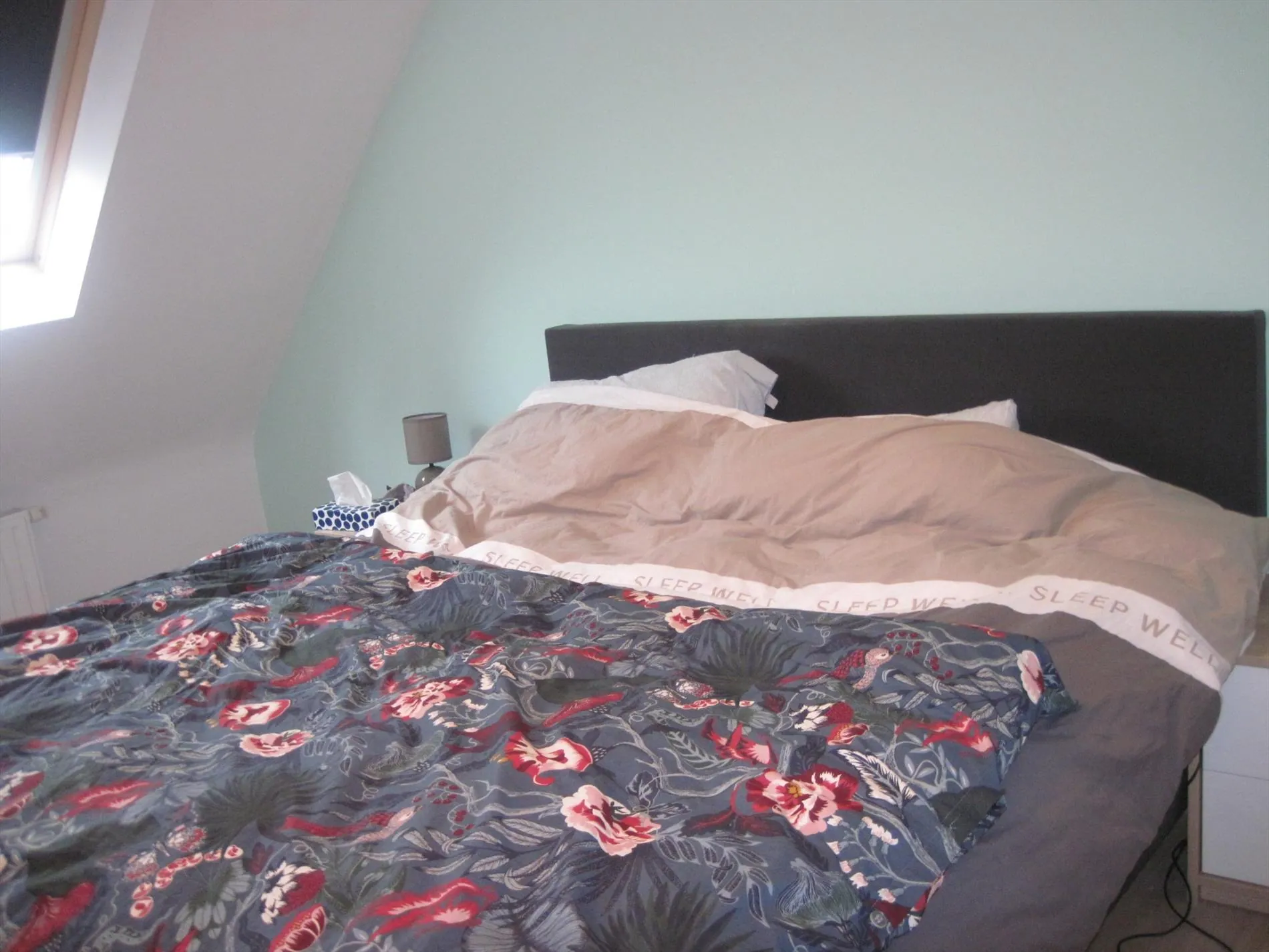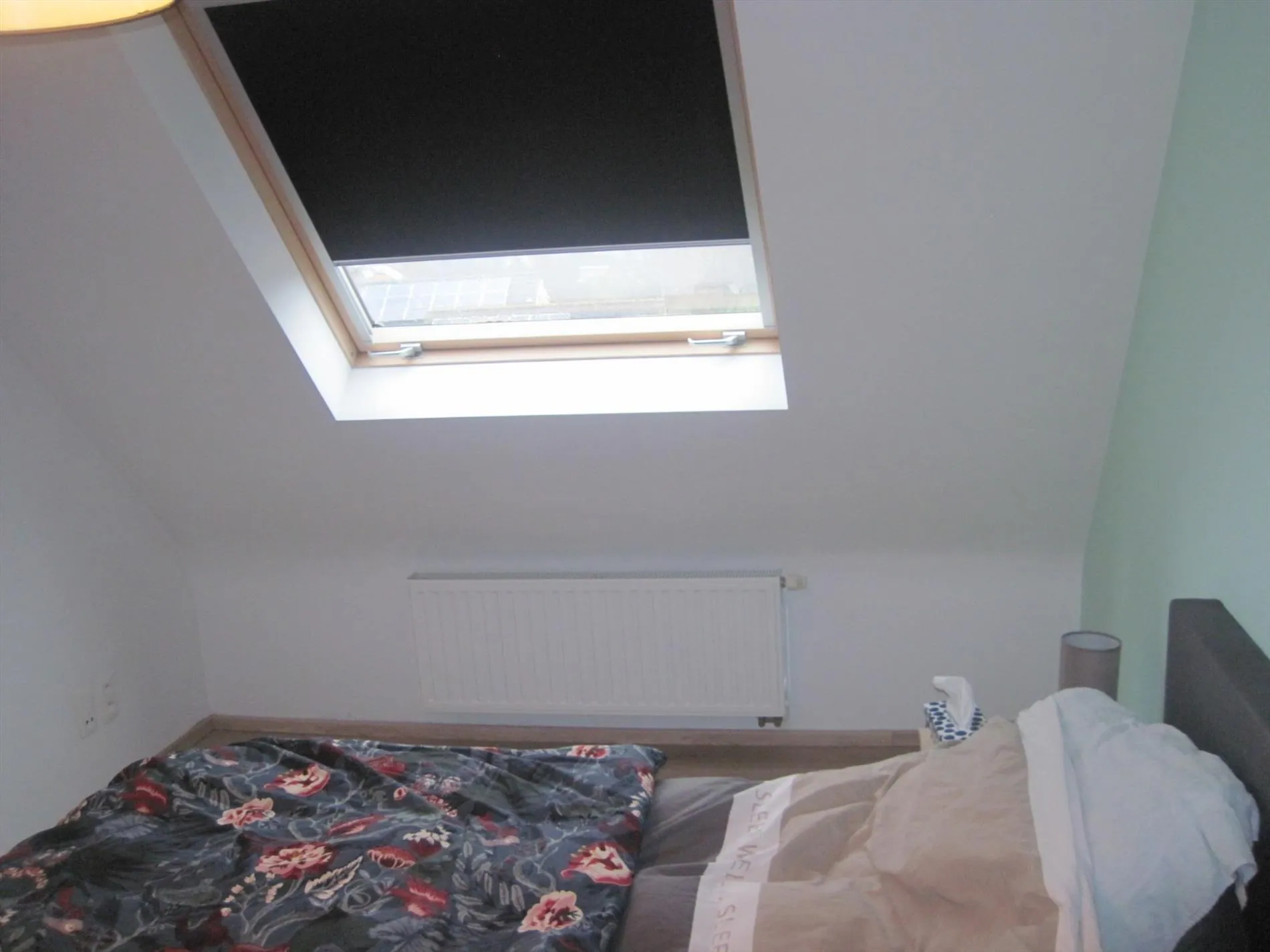 De verdieping telt twee slaapkamers, waarvan één bijzonder ruim.