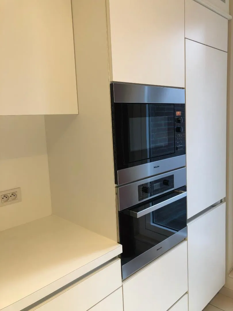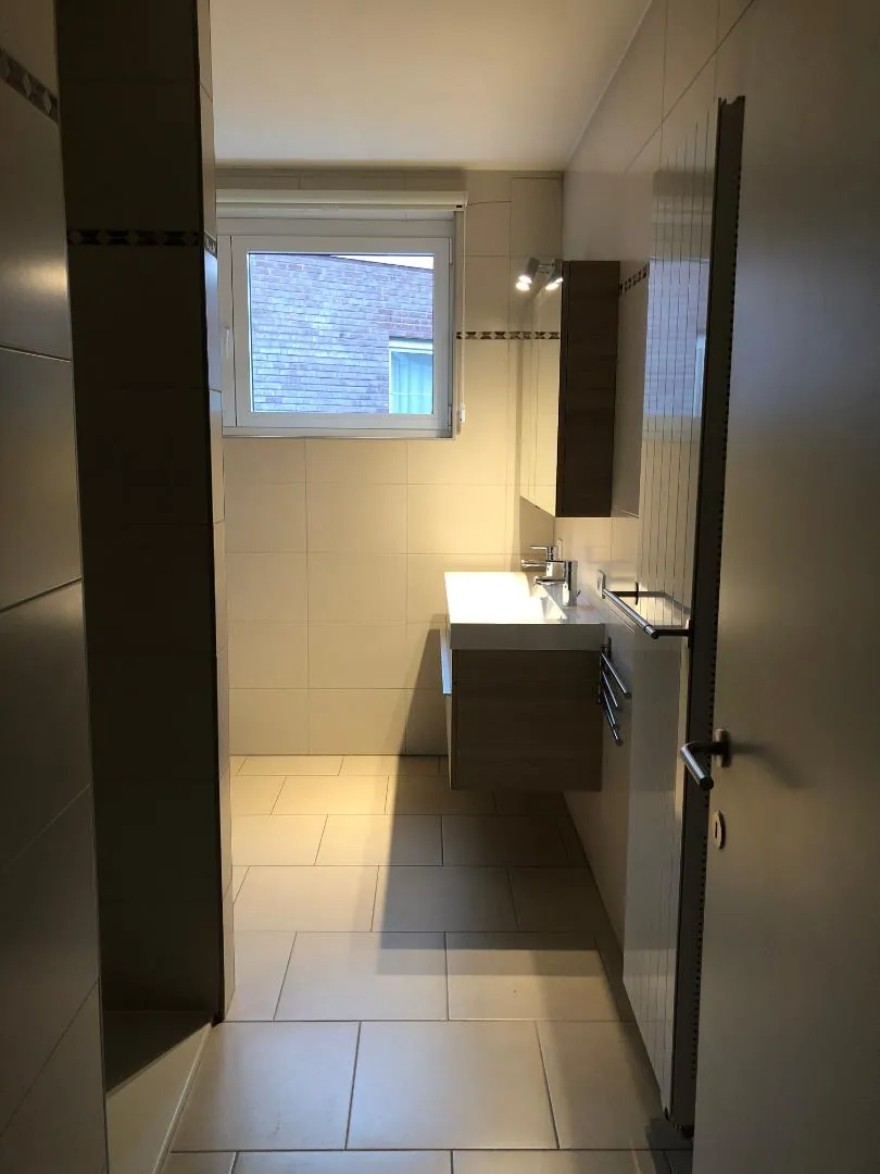 Dit hedendaagse appartement is voorzien van een inkom met gastentoilet, ruime leefruimte met open (volledige uitgeruste) keuken, 2 slaapkamers met aangename parketvloer, praktische badkamer (met dubbele lavabo en regendouche) en 2 bergruimtes.