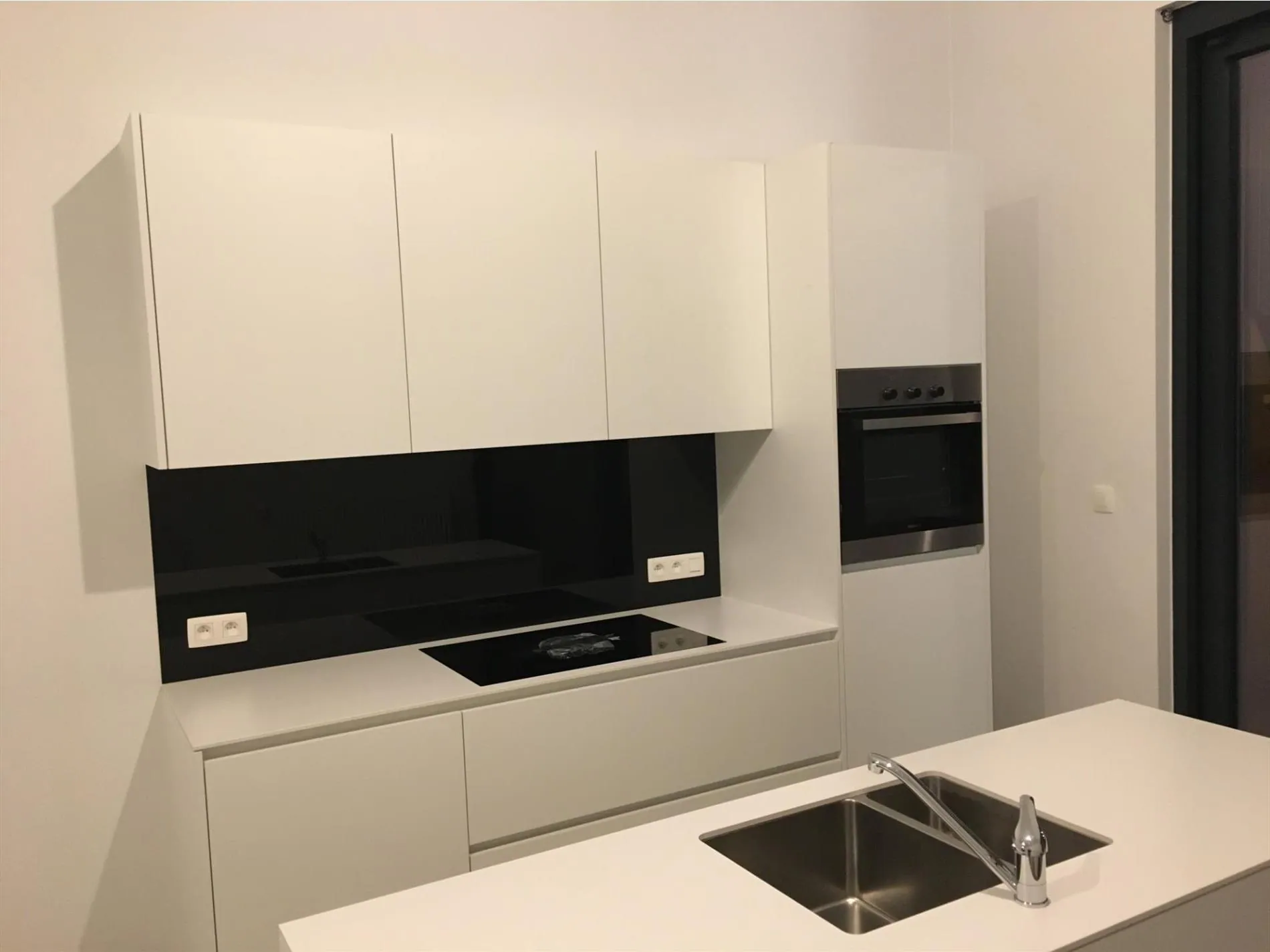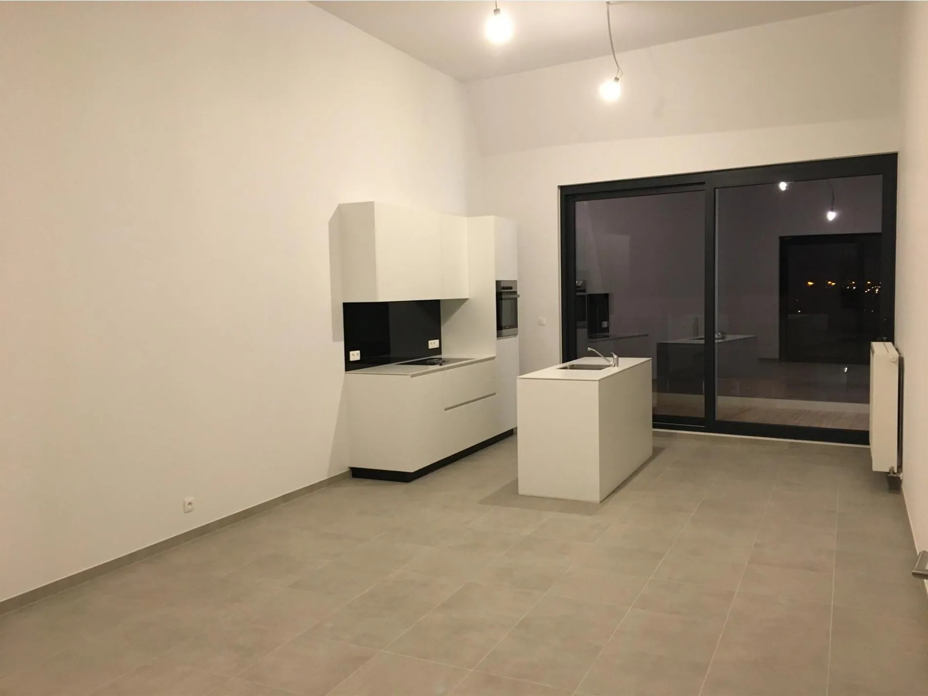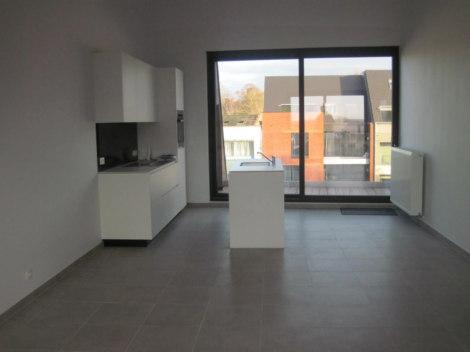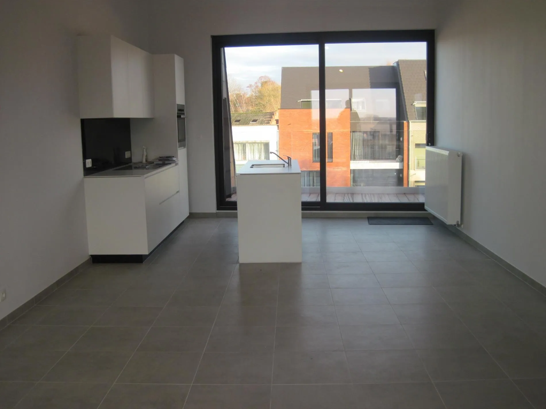 De ruime living met veel licht en ruimte sluit aan op de eigentijdse keuken.