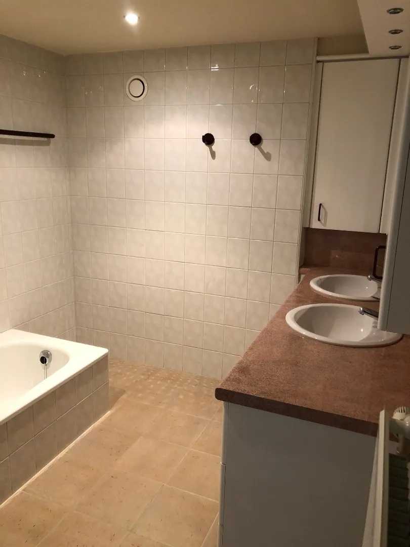 De centrale inkom geeft eveneens toegang tot de twee (ruime !) slaapkamers, badkamer (met bad en dubbel meubel) en een (tweede) berging. Deze tweede berging is inderdaad een bijzondere, praktische troef. Het tweede terras is dan weer een aangenaam extra-tje.