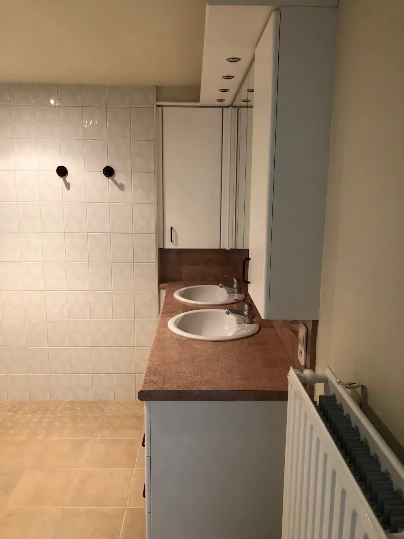 De centrale inkom geeft eveneens toegang tot de twee (ruime !) slaapkamers, badkamer (met bad en dubbel meubel) en een (tweede) berging. Deze tweede berging is inderdaad een bijzondere, praktische troef. Het tweede terras is dan weer een aangenaam extra-tje.