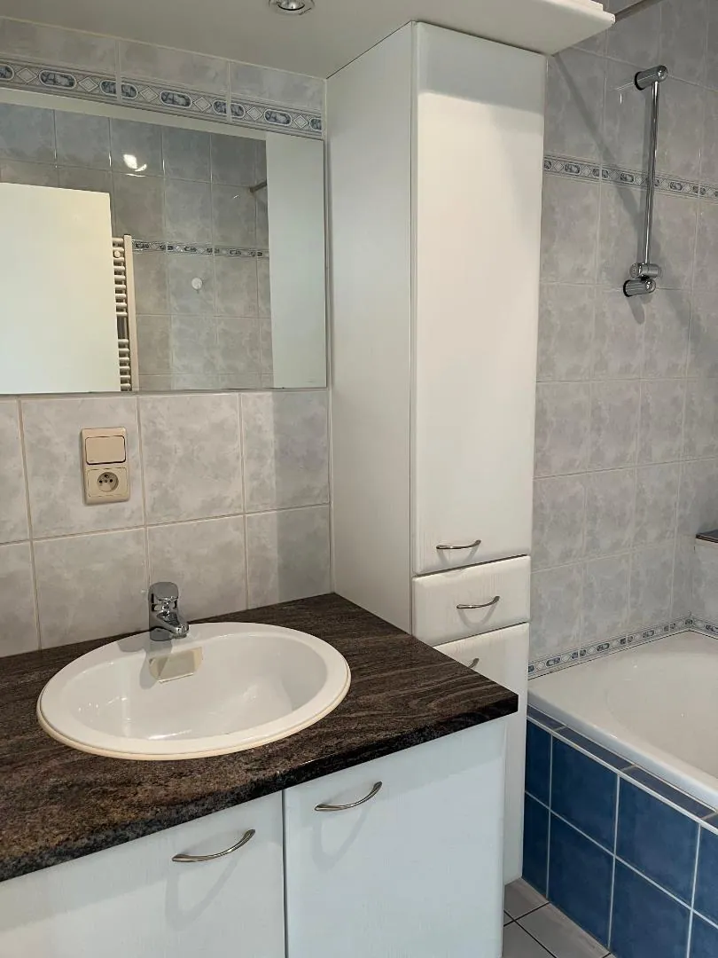 Dit degelijke, ruime appartement is voorzien van een aangename leefruimte met open keuken, 2 slaapkamers, badkamer, afzonderlijk toilet en een praktische bergruimte.