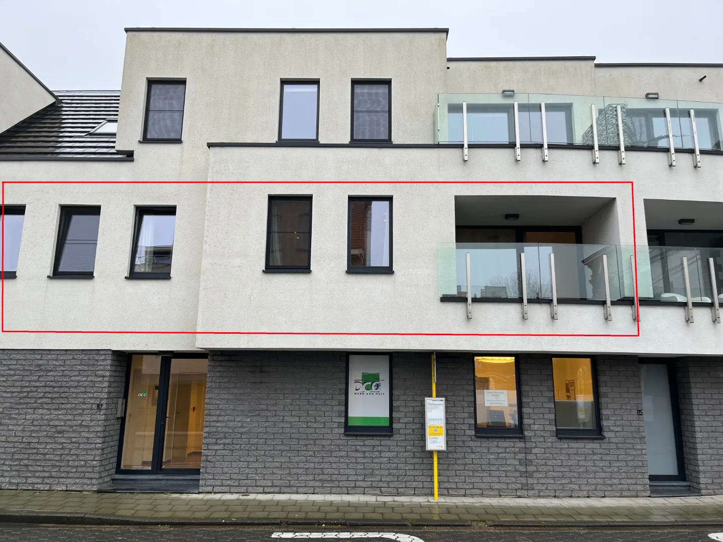 Het appartementsgebouw, situeert zich vlakbij het Asperse marktplein.