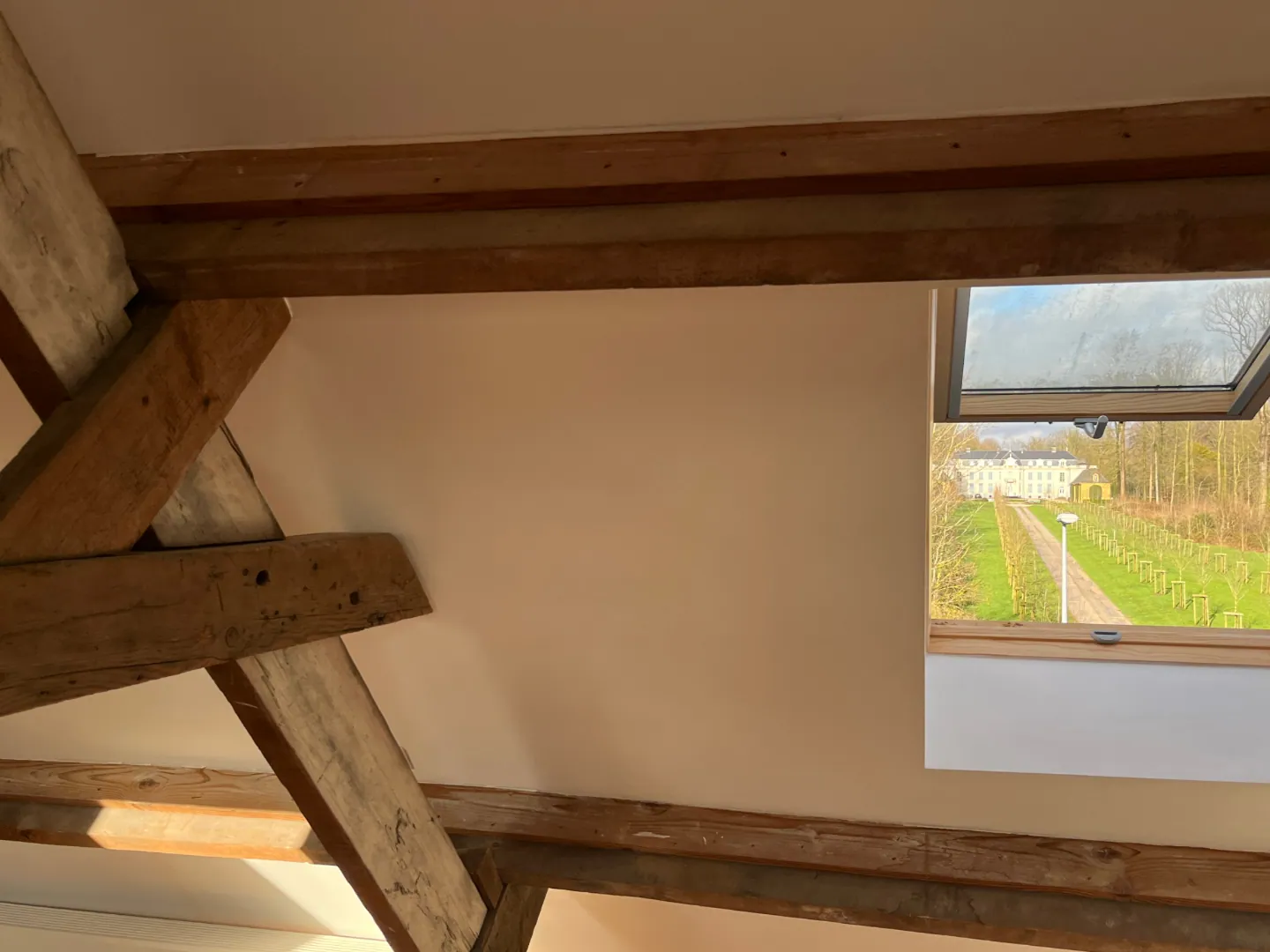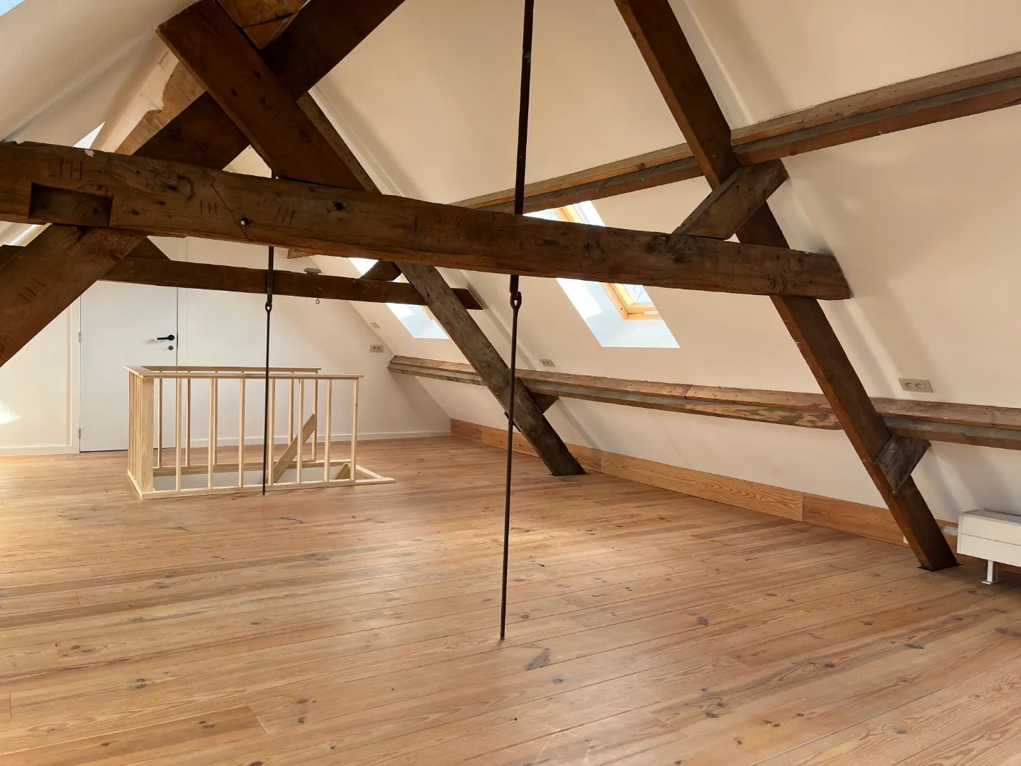 Deze woonst beschikt over een praktische inkom met ruime berging onder de trap, aangename én lichtrijke leefruimte, open keuken met aanpalende berging (met voorzieningen voor wasmachine en droger), bureel (12m²), badkamer, slaapkamer (15m²), ruime multifunctionele zolderruimte (2de slaapkamer) met aanpalende bergruimte en terras.