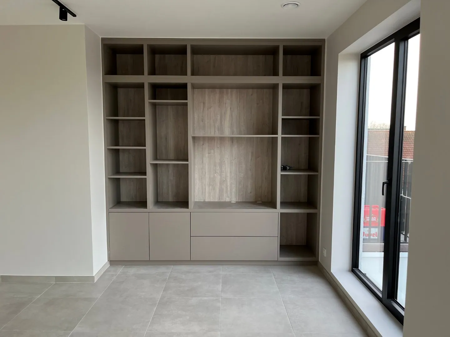 Alzo werd het penthouse voorzien van een ruime, praktische vestiairekast in de inkomhal en televisie/boekenkast in de leefruimte, stalen inkomdeur, ledverlichting, muggenramen, ... .