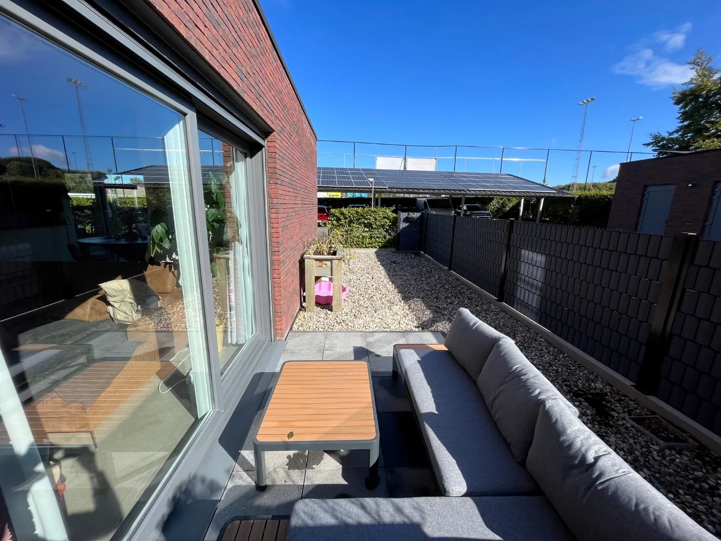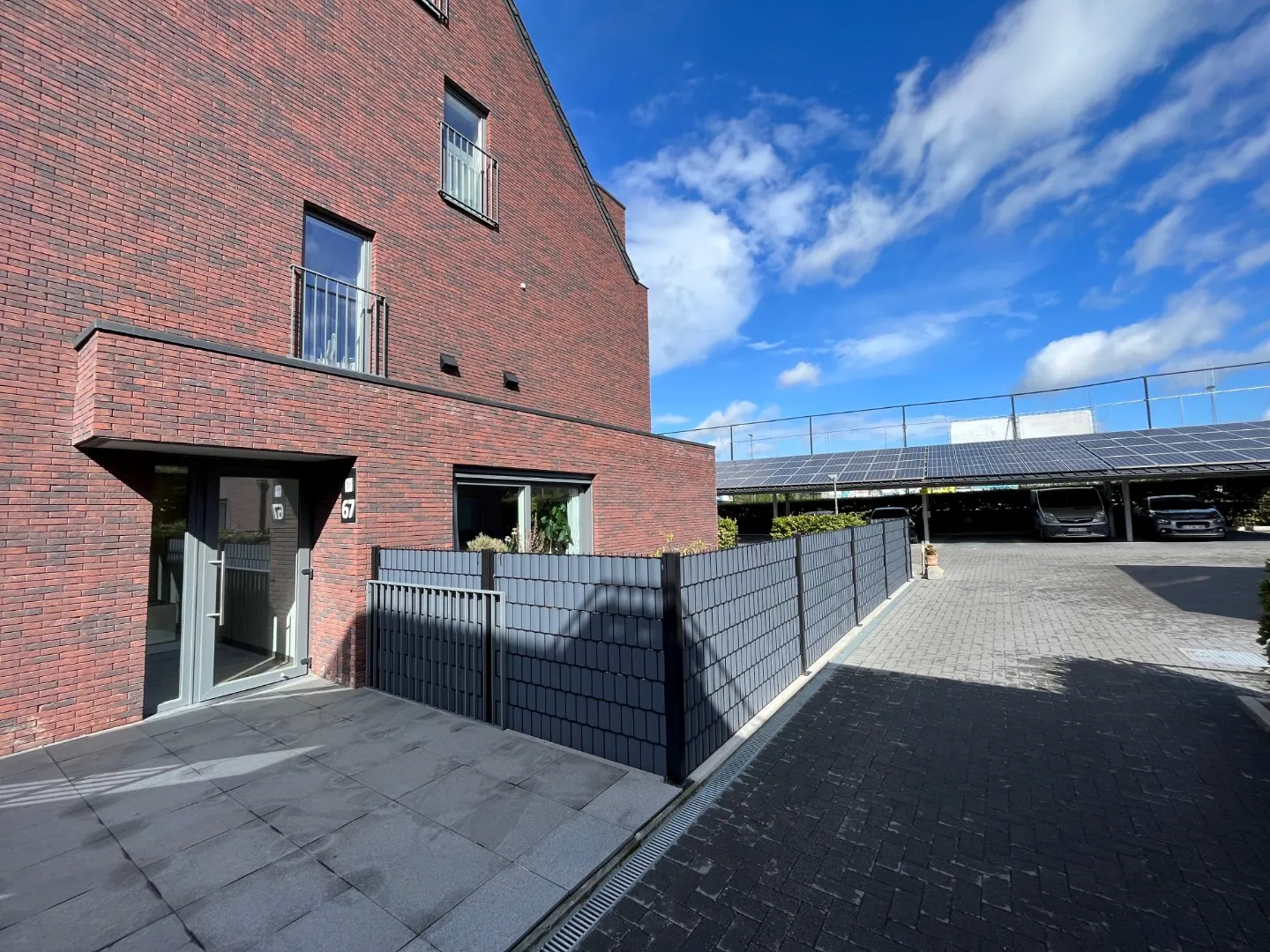 Achteraan het gebouw zijn er extra parkeermogelijkheden in een carport, en ook vooraan kan vrij geparkeerd worden.
