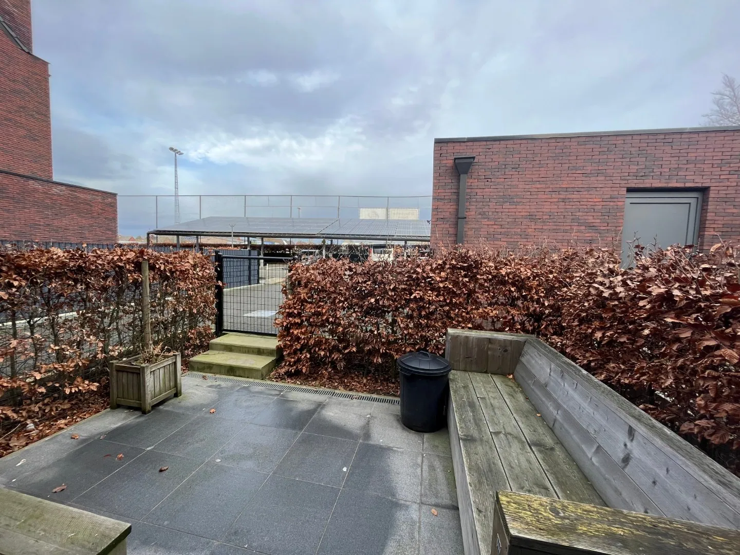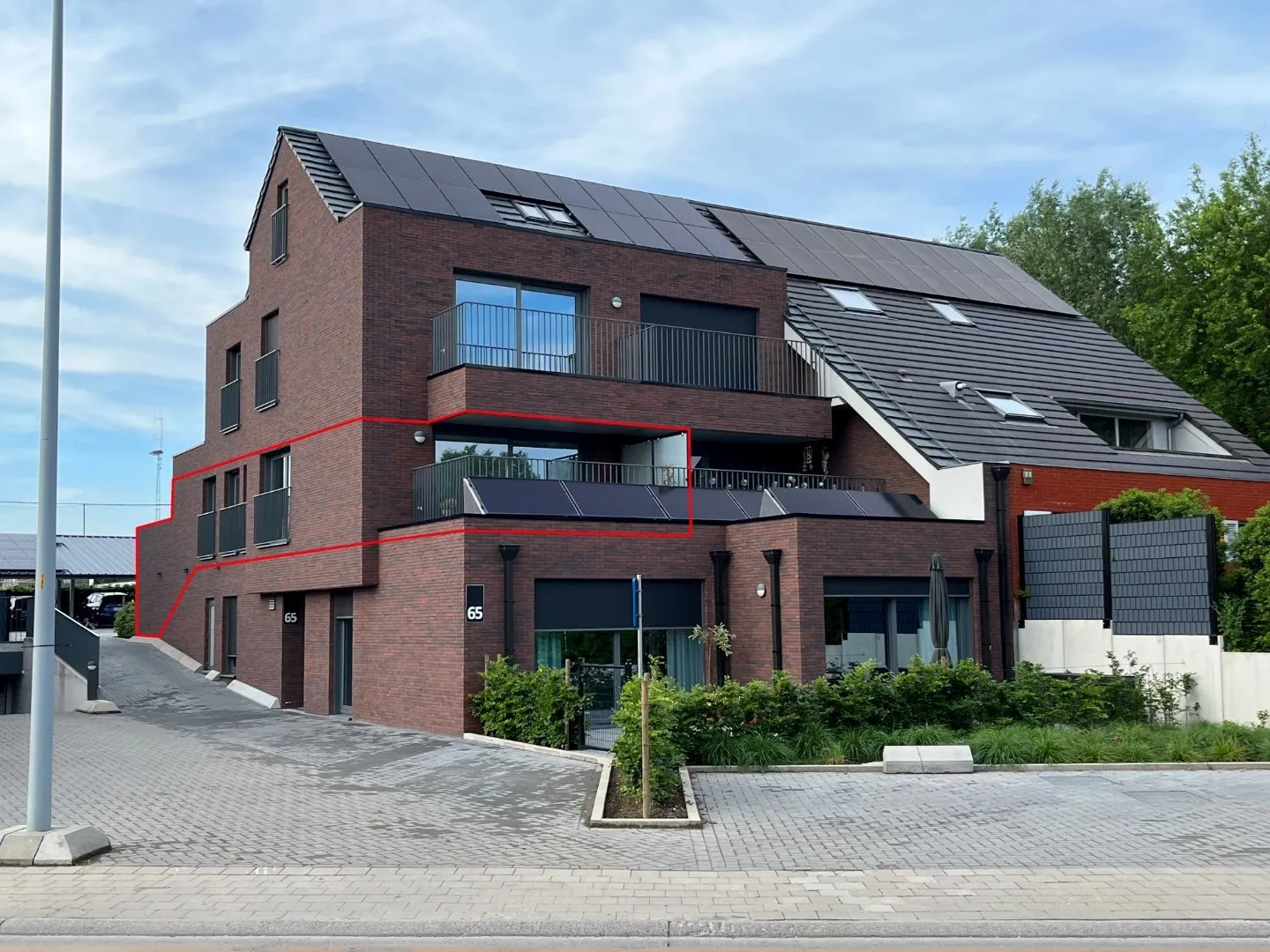 Er is voldoende plaats op het terrein, zowel onder de carport als vooraan (nr. 65 en 67) om vrij te parkeren. Bovendien zijn er publiek toegankelijke snelladers Smappee van 22 KW onder de carport en vooraan.