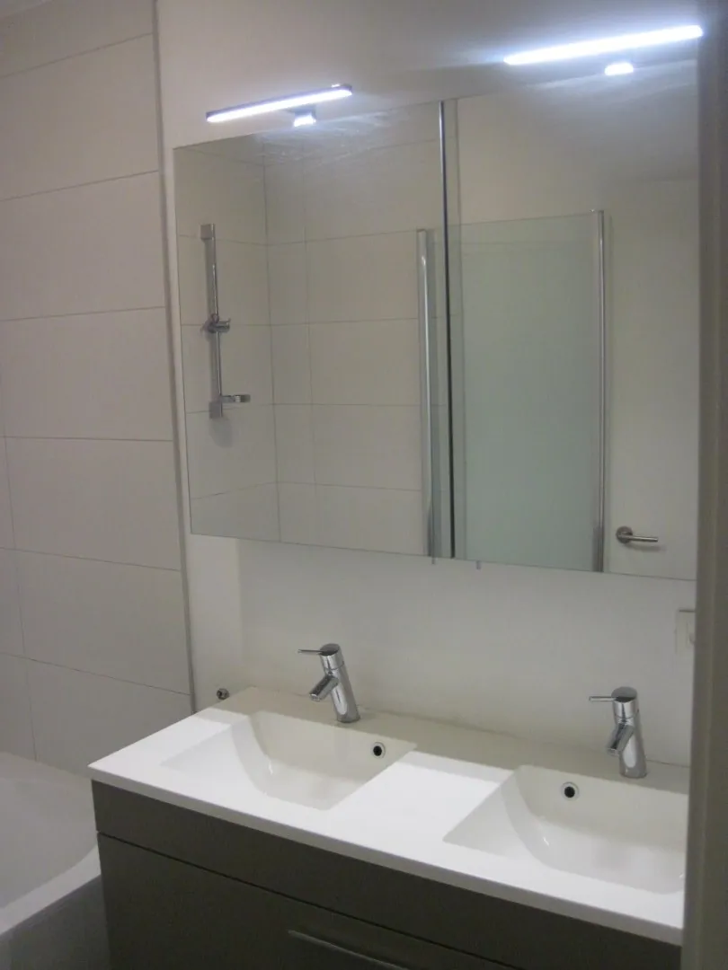 Moderne badkamer (dubbel meubel en bad). Twee slaapkamers.