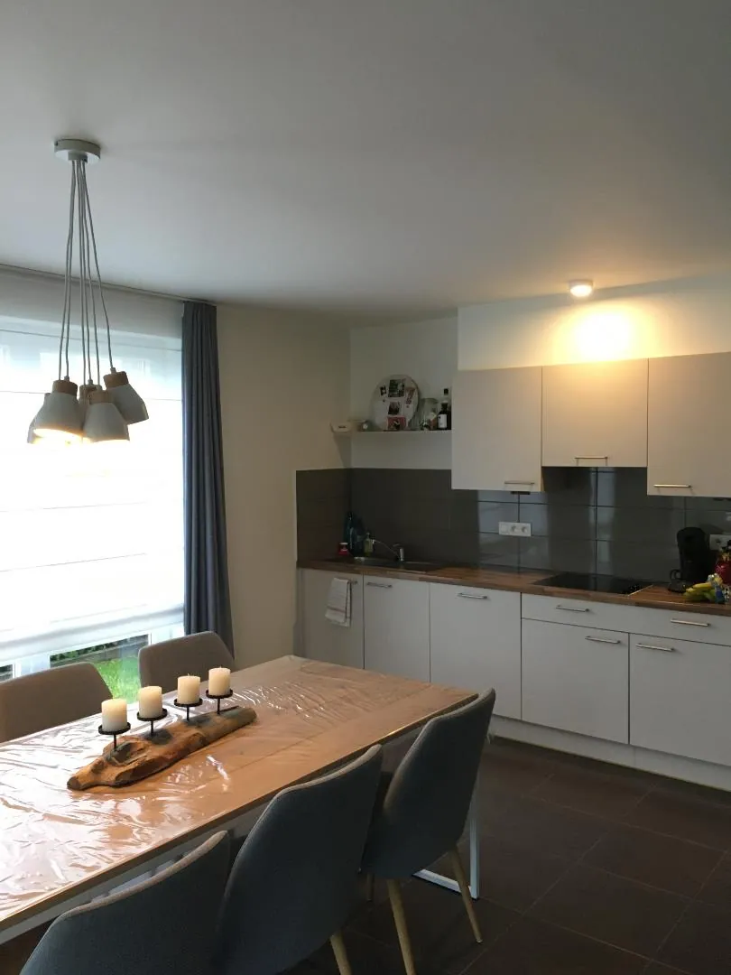 De leefruimte, incl. uitgeruste open keuken, staat centraal in dit appartement. De keuken beschikt o.a. over een vaatwasmachine, een combi-oven en een ontkalker.
