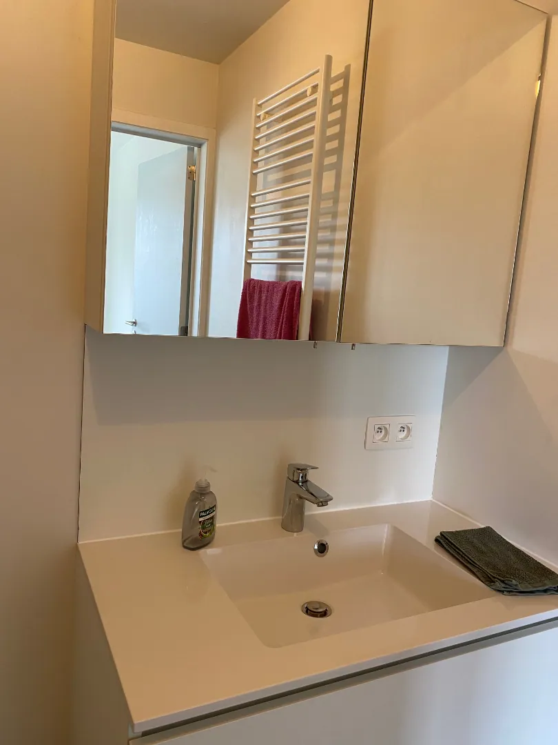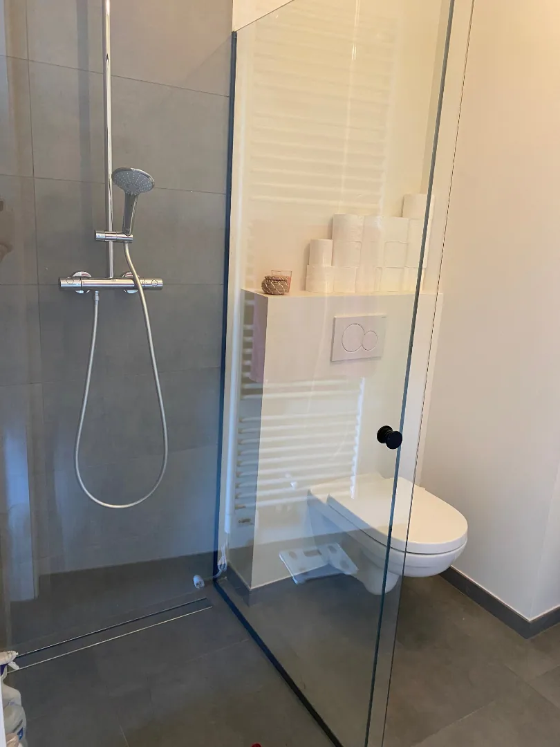 Daarnaast bevindt zich de slaapkamer en de modieuze badkamer (met inloopdouche).