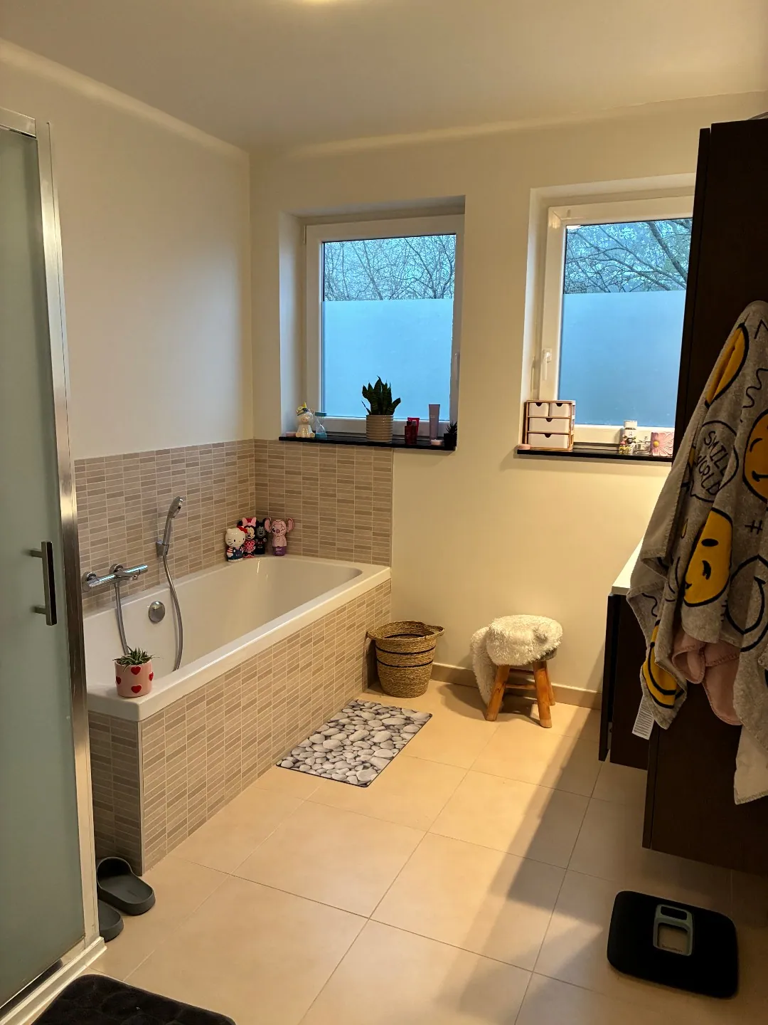 Drie ruime slaapkamers. Badkamer met dubbel meubel, bad én douche.