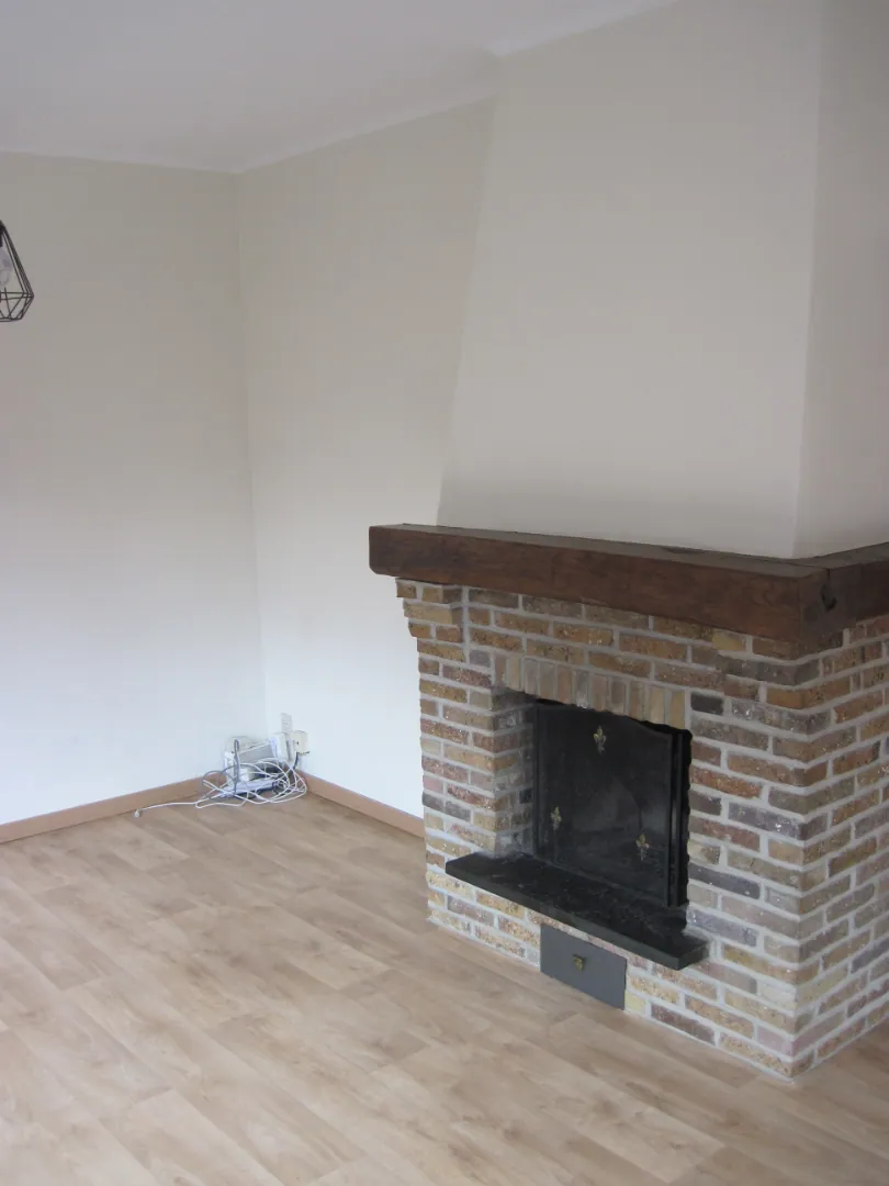 De aangename leefruimte beschikt over meerdere raampartijen, alsook een gezellige open haard (sierelement). Deze leefruimte sluit aan op een eveneens ruime, eigentijdse keuken (met een belendende berging).