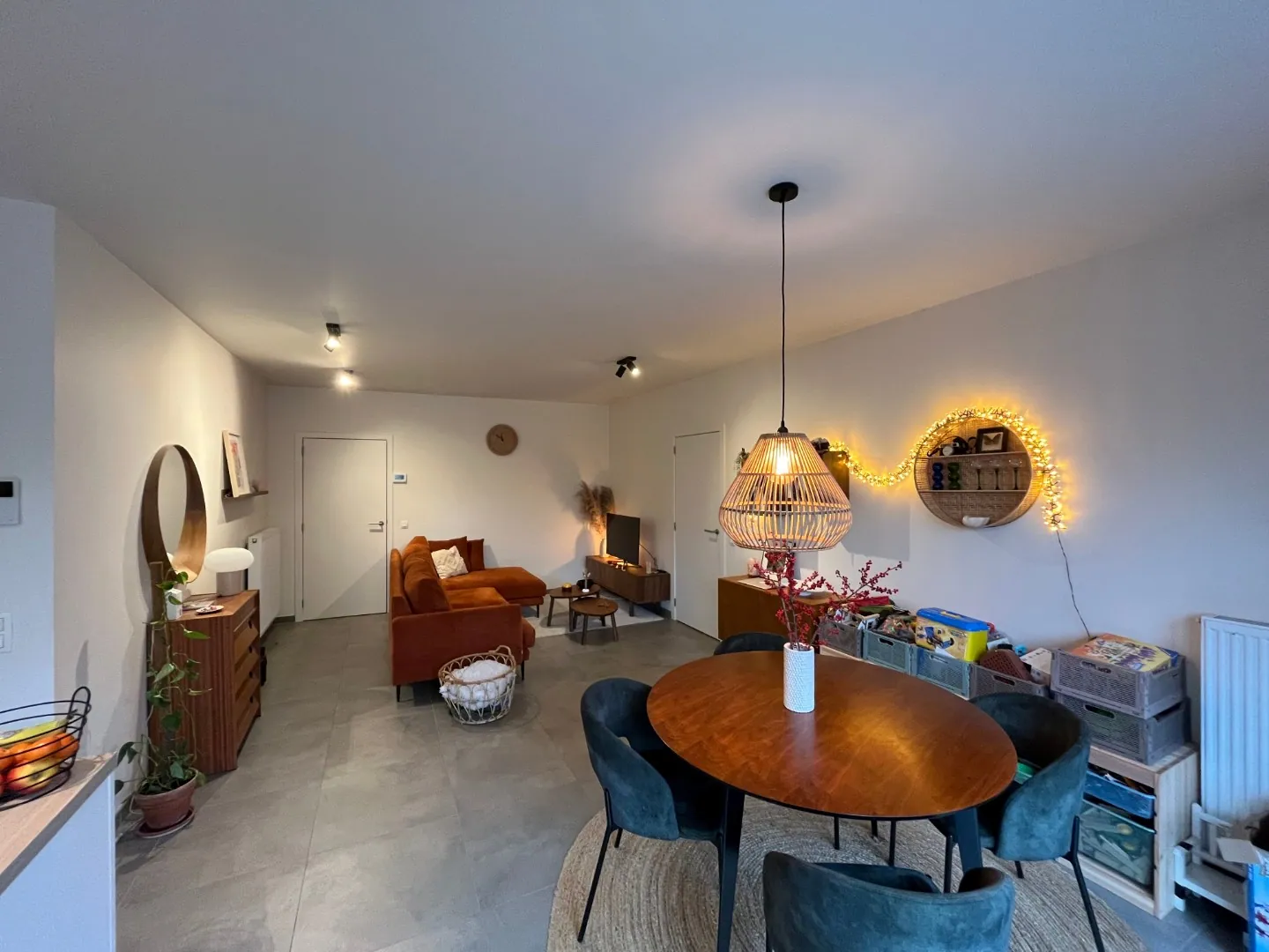 Dit aangename gelijkvloerse appartement omvat een inkomhal, een ruime woonkamer met zithoek en een open, volledig geïnstalleerde keuken, met aansluitend een praktische berging en met toegang tot het ruime terras. Daarnaast zijn er twee slaapkamers, een aparte toilet en een badkamer met lavabo en inloopdouche.