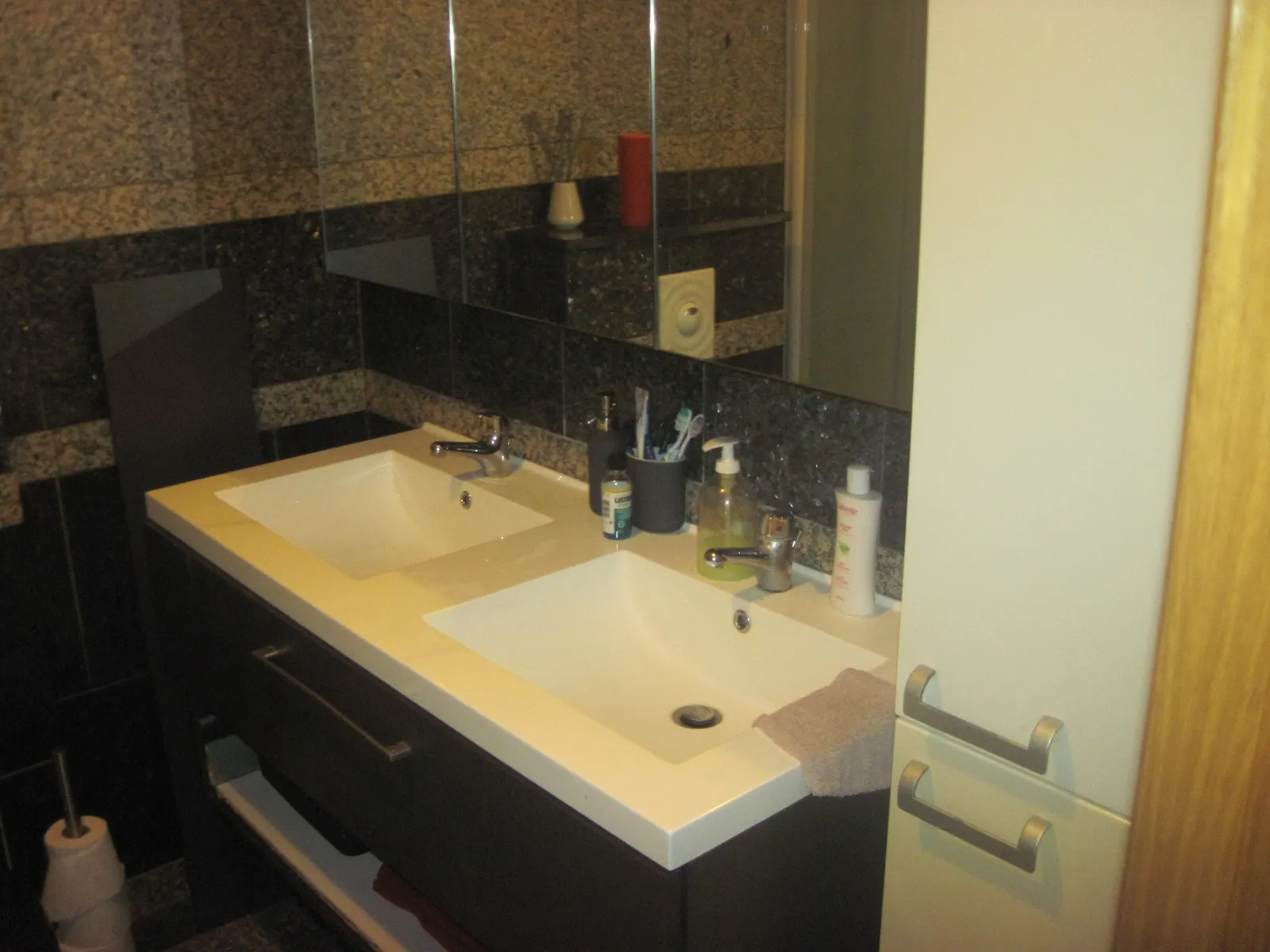 Toegang tot appartement via lift en gaanderij.
