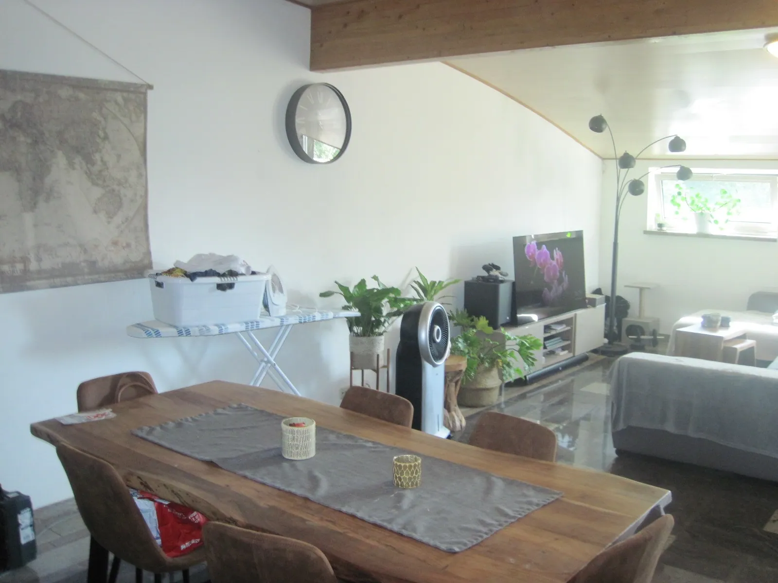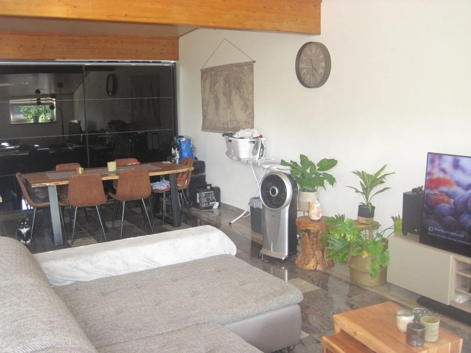 Ruime living en open keuken, met veel licht en ruimte.