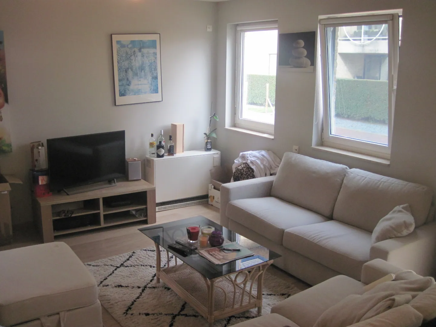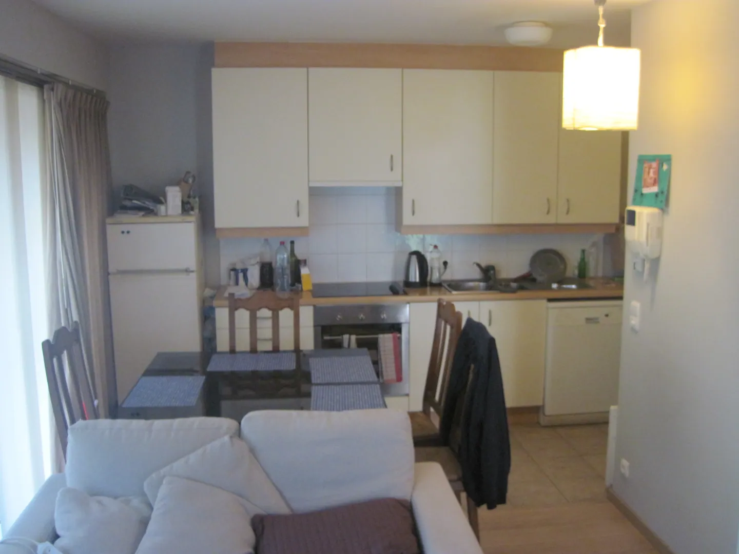 Het gelijkvloers appartement bestaat uit een praktische open keuken, aangename leefruimte met slaaphoek.