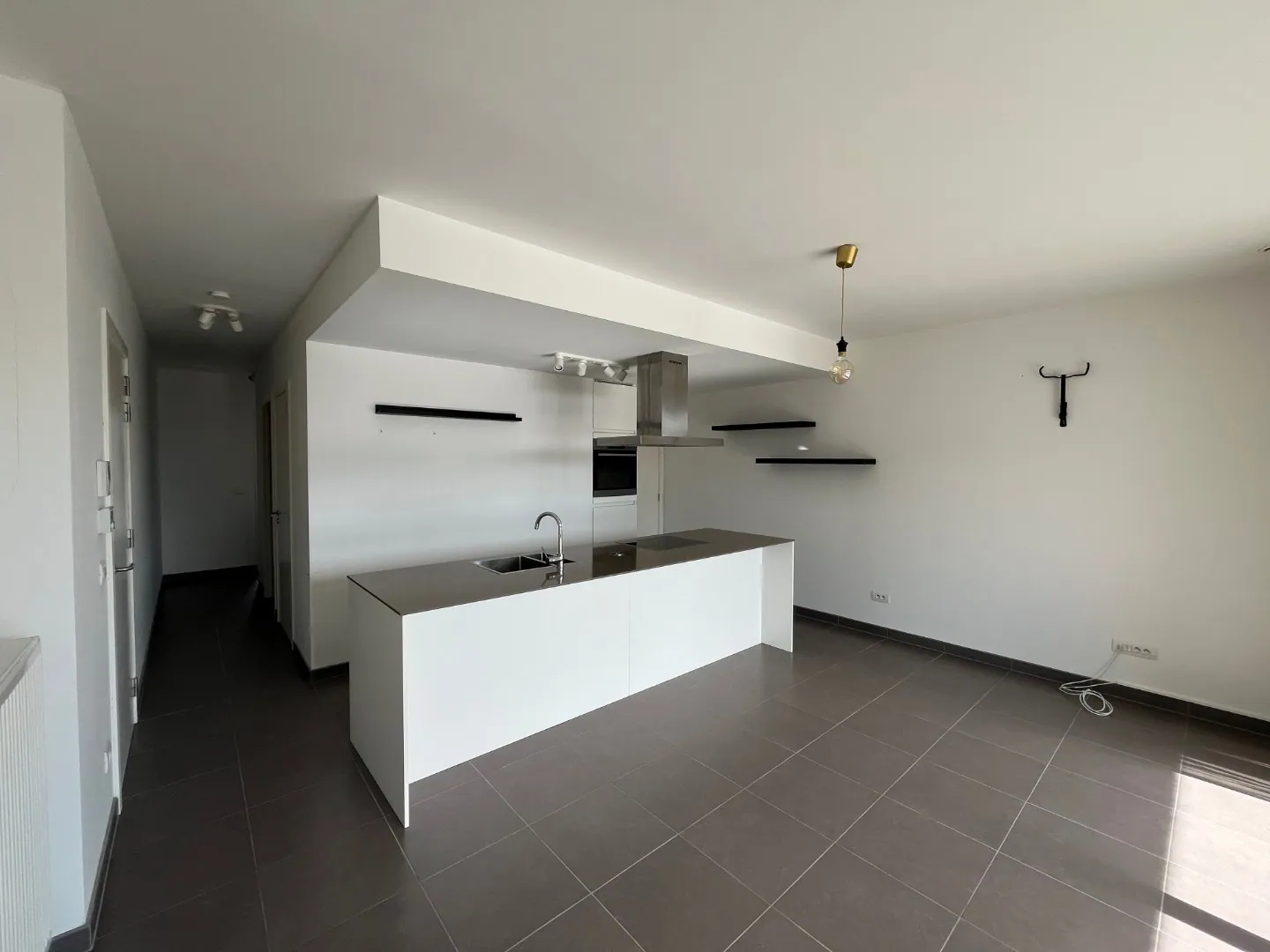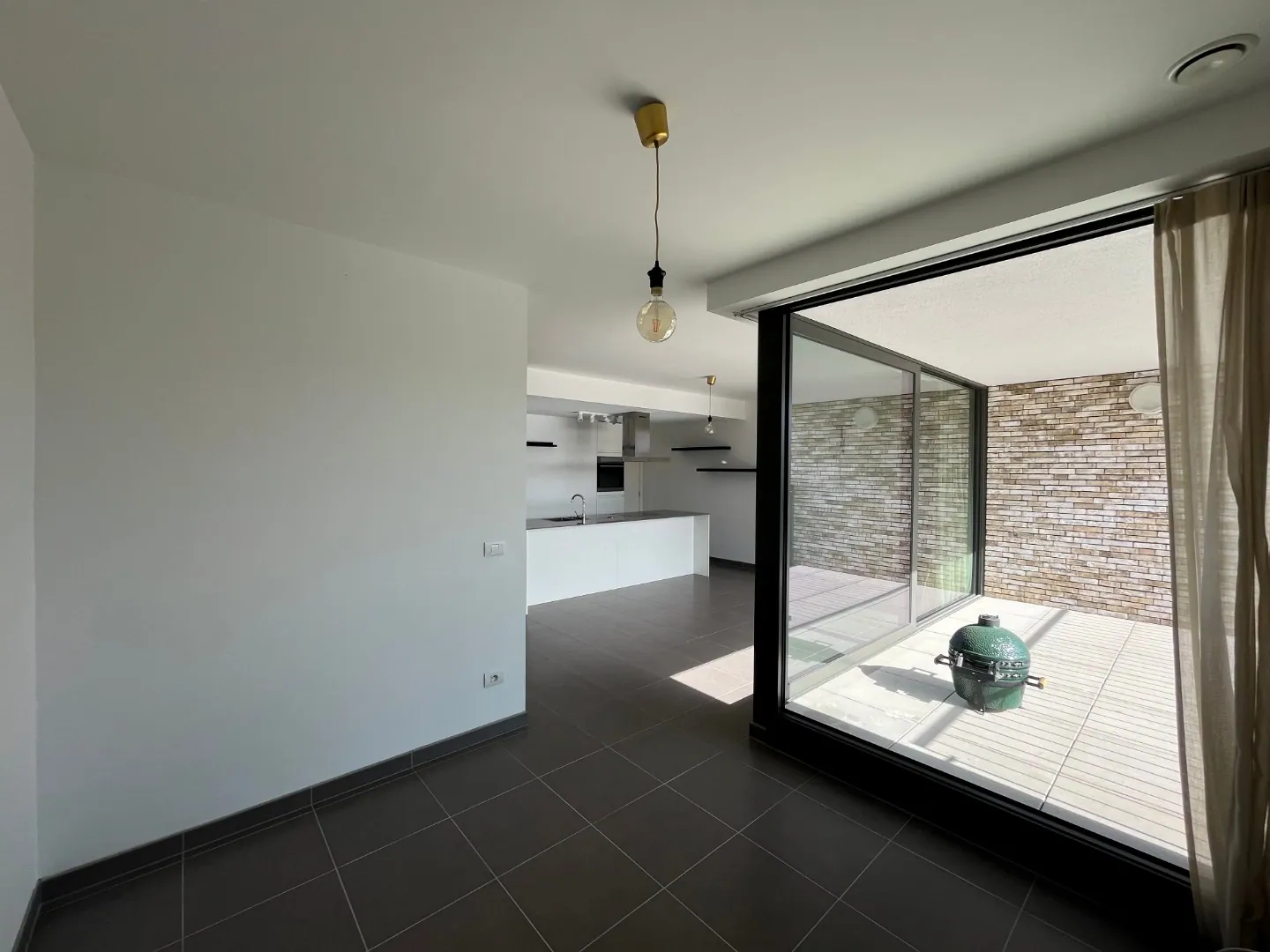 Lichtrijke leefruimte met open keuken (en ruime berging naast de keuken).