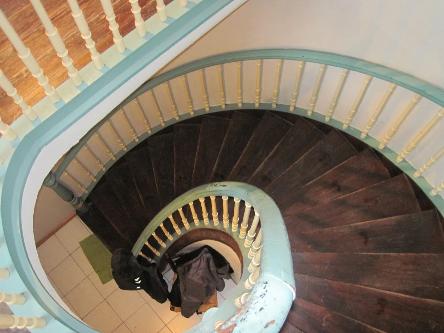 De authentieke trap brengt u naar de eerste verdieping, waar we de leefruimte en keuken aantreffen. Eveneens : 2 (slaap)kamers