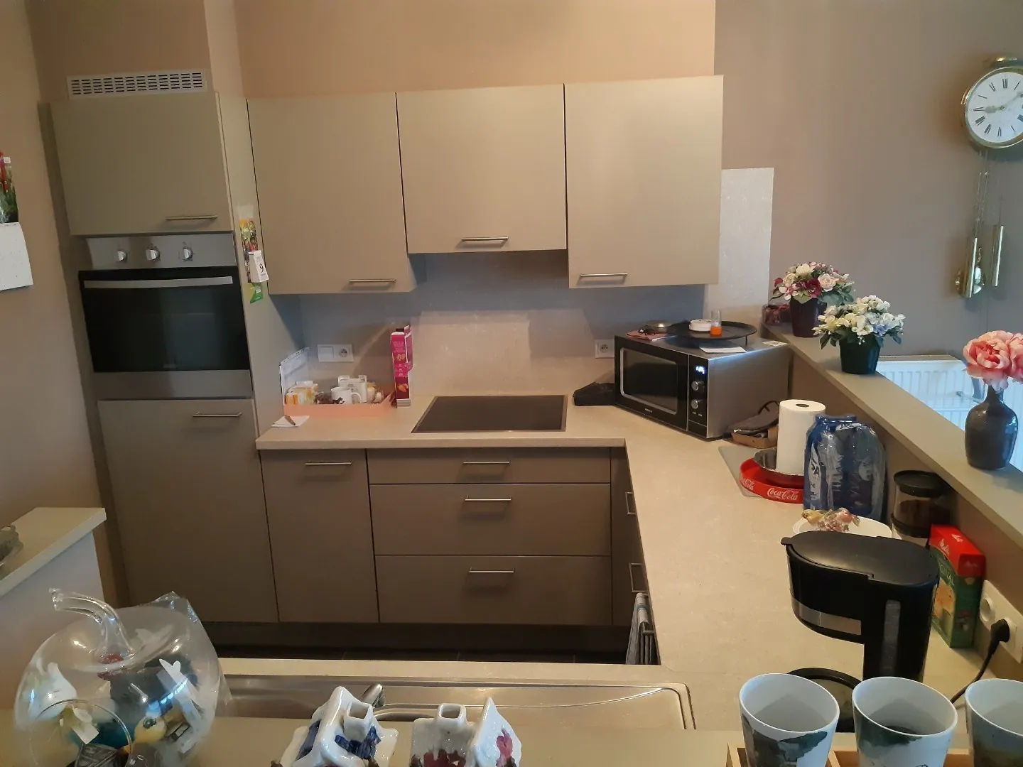 De comfortabele lift brengt u naar de tweede verdieping, waar dit aangename appartement zich bevindt. Via de stijlvolle inkomhal betreedt u de ruime en lichtrijke leefruimte, bestaande uit een gezellige eetplaats en salon. De centraal gelegen open keuken sluit hier perfect op aan en biedt een praktische indeling. Daarnaast beschikt het appartement over een afzonderlijke berging en een gastentoilet.