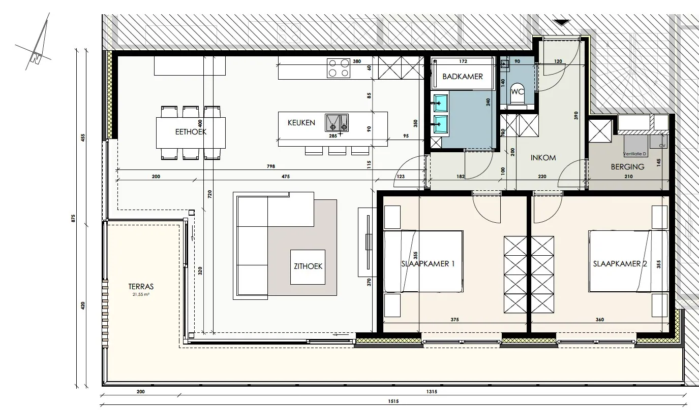 Het appartement beschikt verder over twee volwaardige slaapkamers, een stijlvolle badkamer met inloopdouche (én verwarmde spiegel), een apart toilet en een praktische berging met aansluiting voor wasmachine en droogkast.