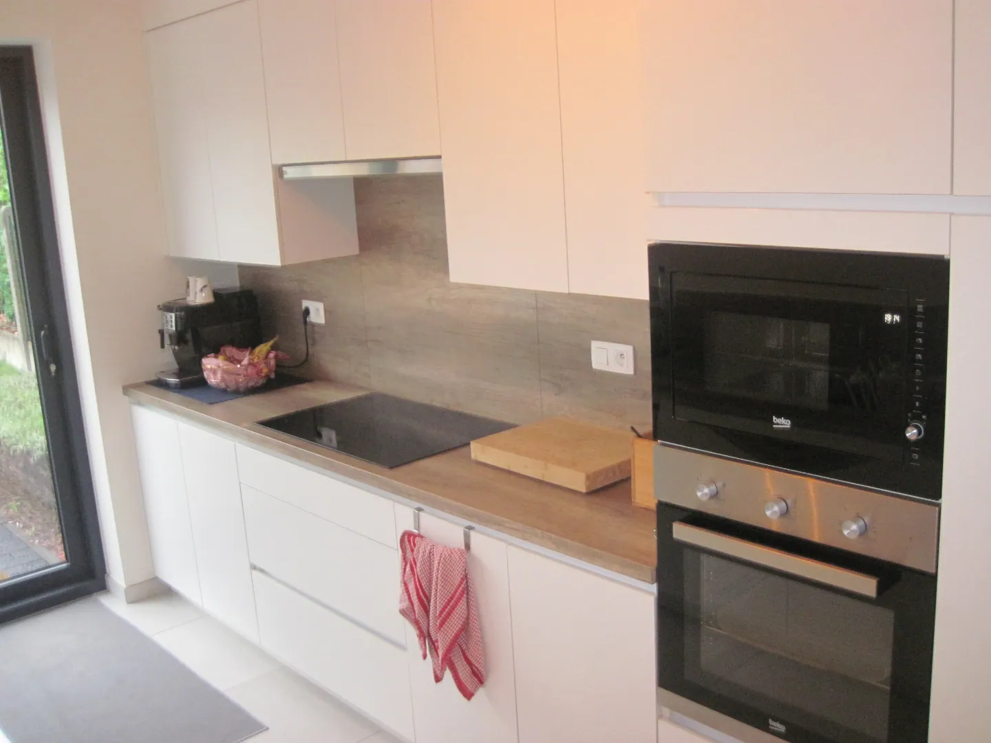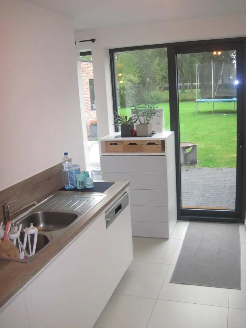 Zowel de keuken, als de eet- en zithoek geven uit op het aangenaam groot zonneterras.