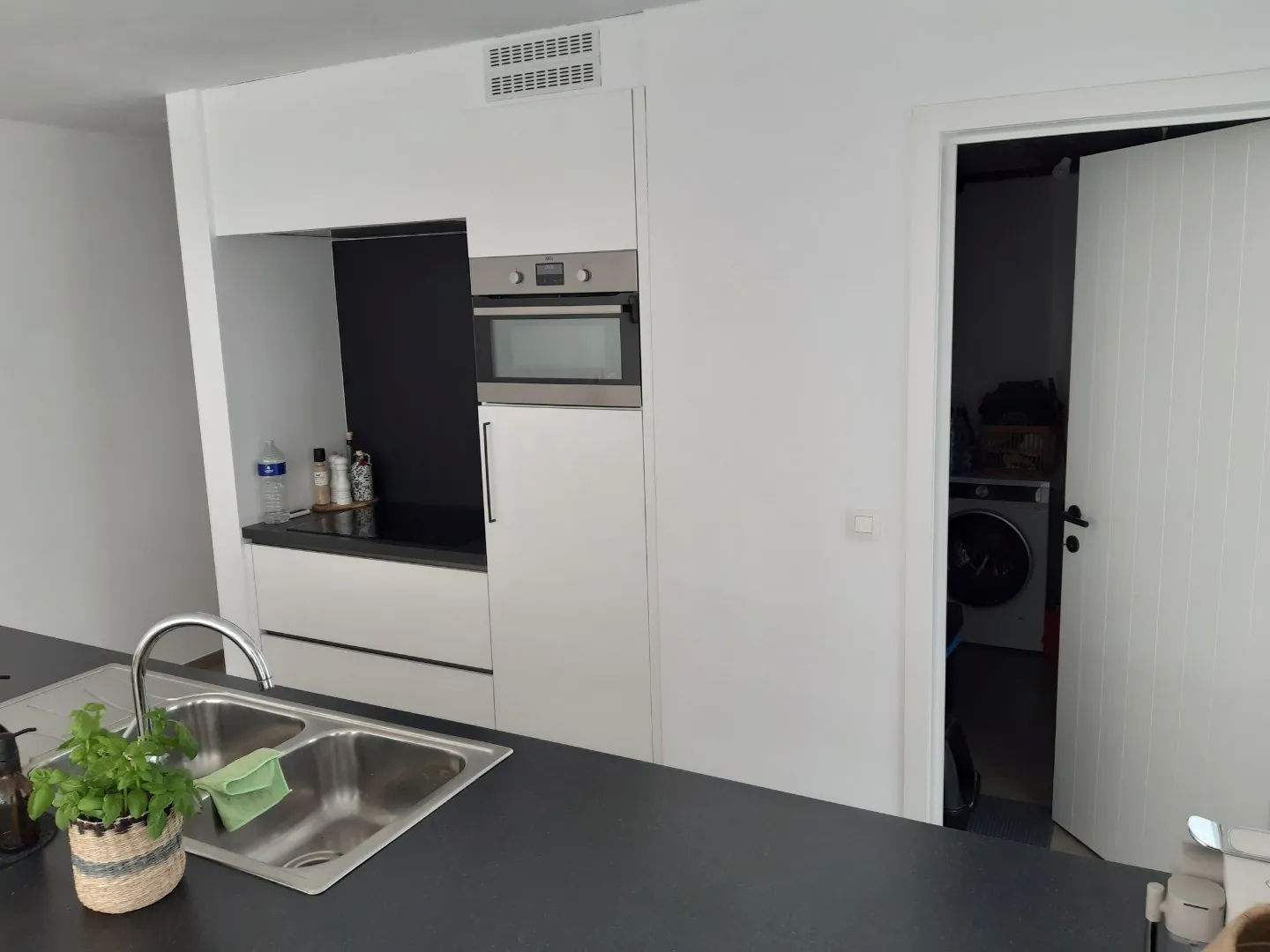 Achteraan situeert zich de autostaanplaats. Het gebruik van de gemeenschappelijke fietsenberging is eveneens inbegrepen in het appartement.