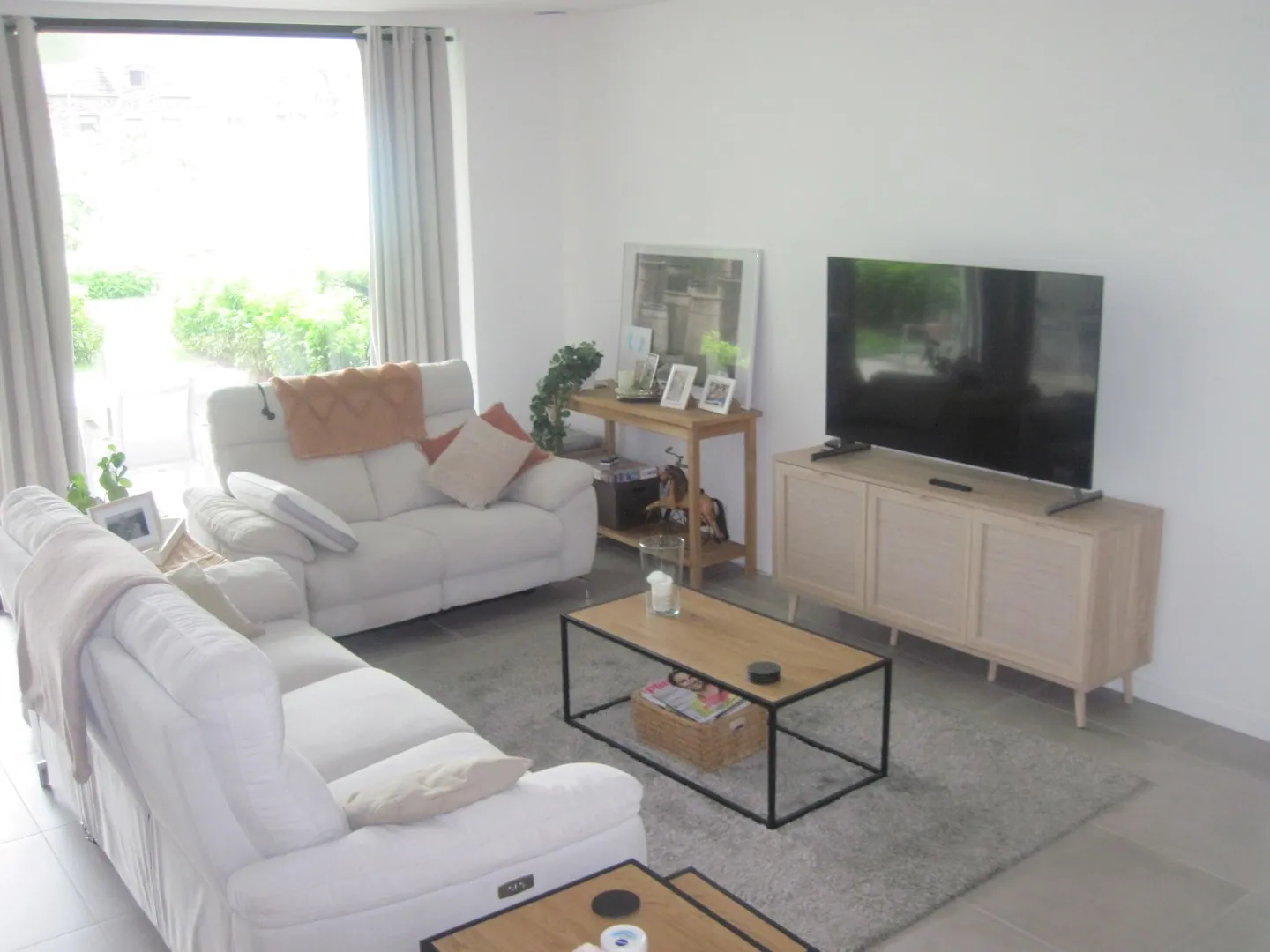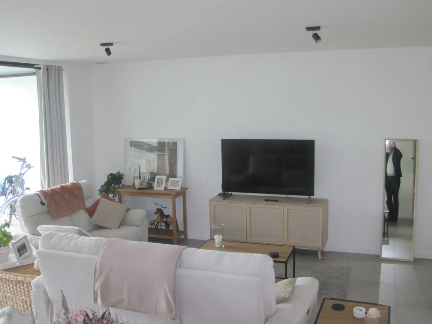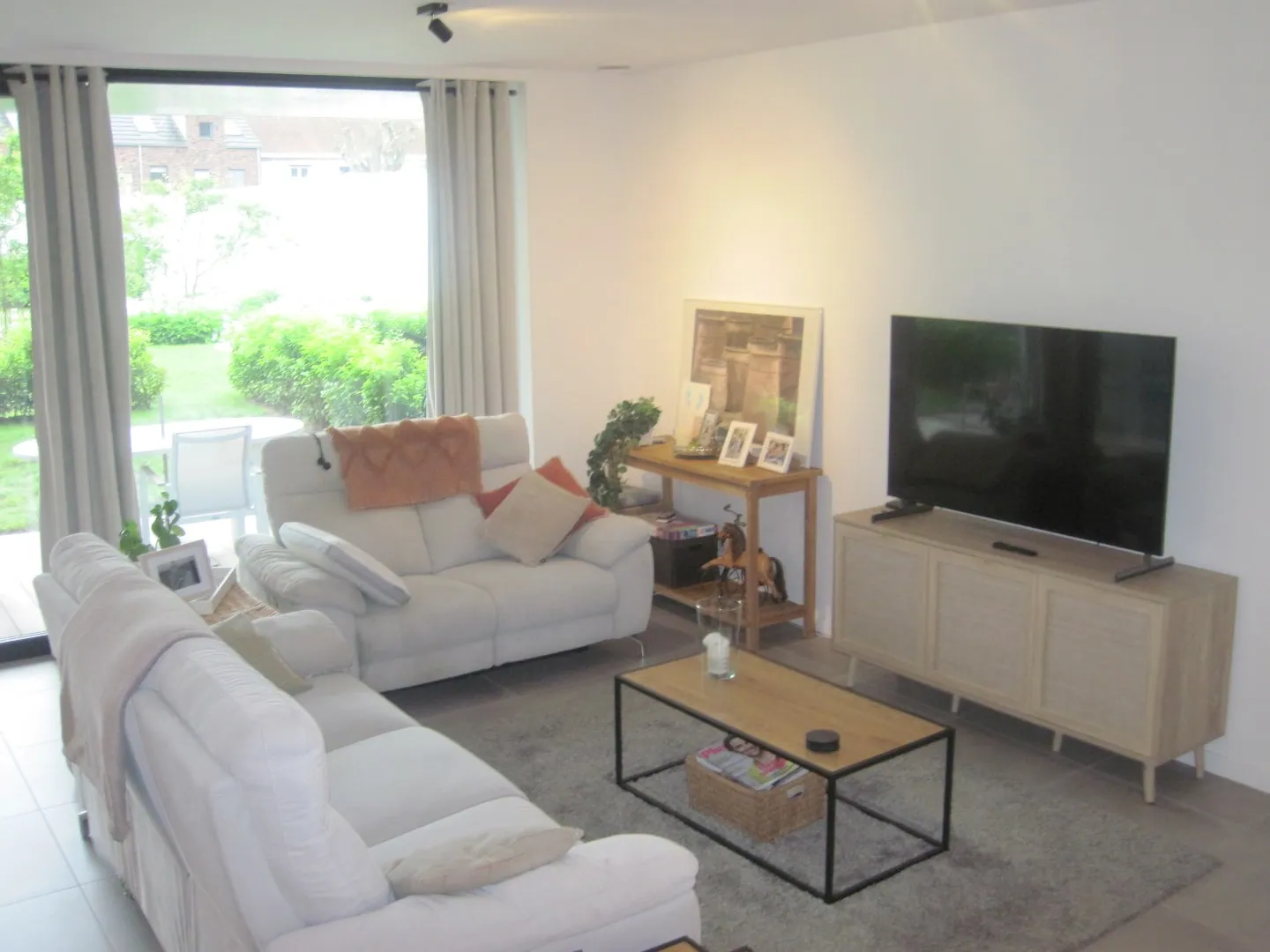 De aangename, moderne leefruimte met open keuken geeft eveneens toegang aan een ruim terras en bijpassende, eigen tuin.