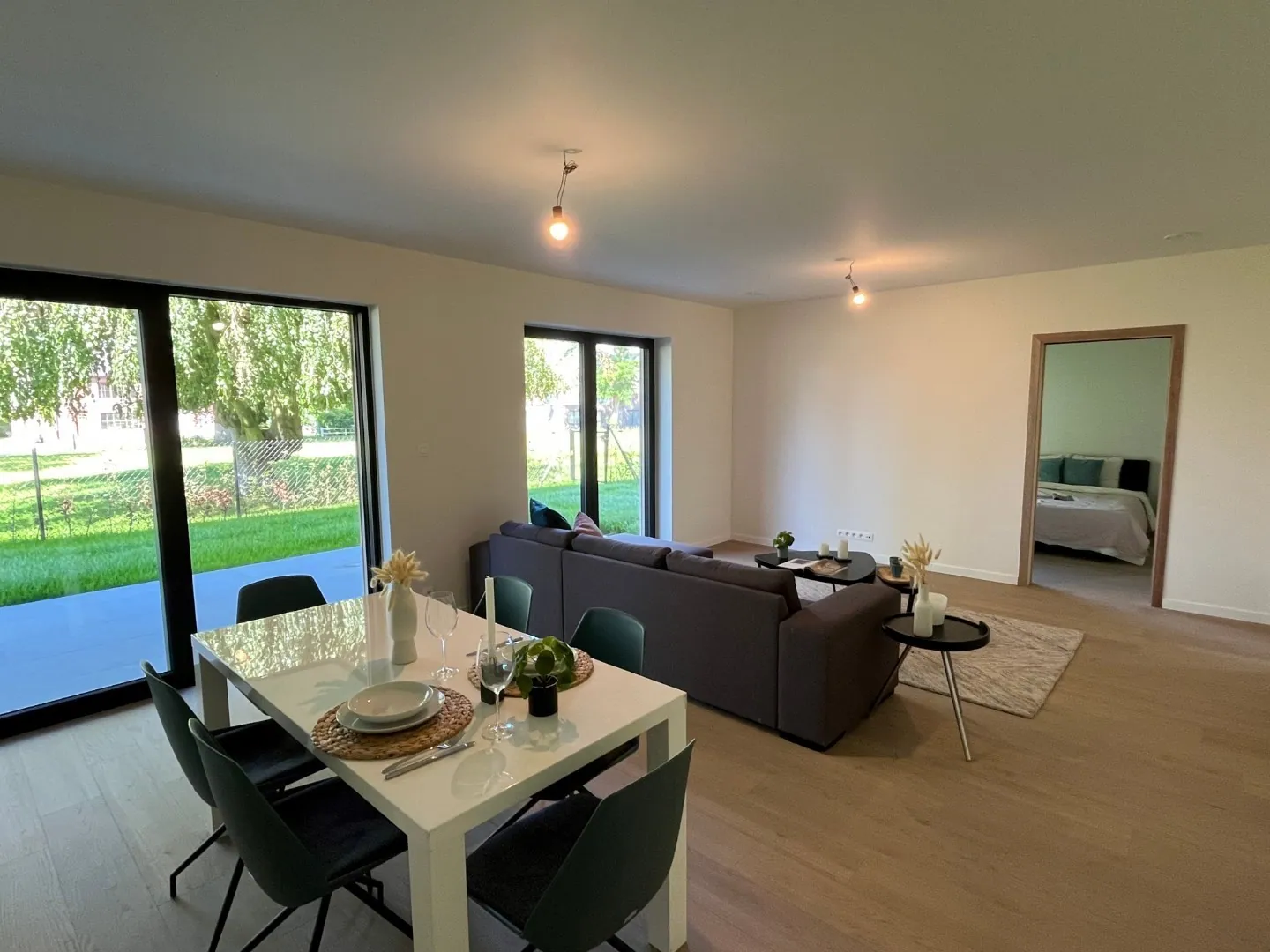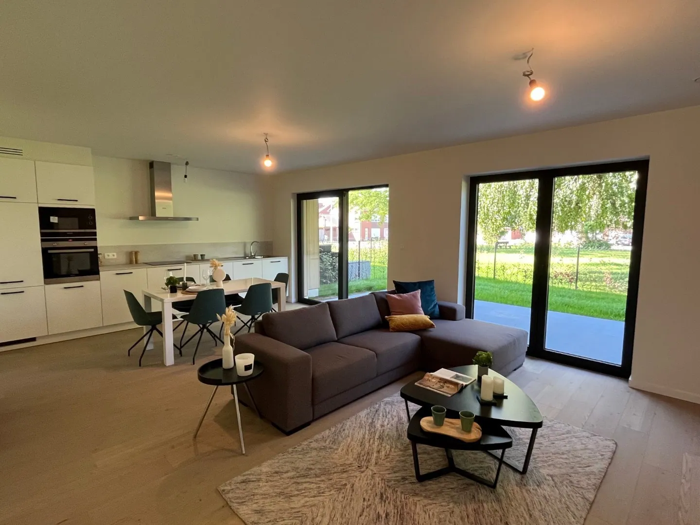 Dit appartement beschikt over een inkomhal met gastentoilet, een leefruimte met open keuken, een tuin en terras, twee (slaap)kamers en een ruime badkamer. Daarnaast is er veel bergruimte dankzij de aan de keuken grenzende berging.