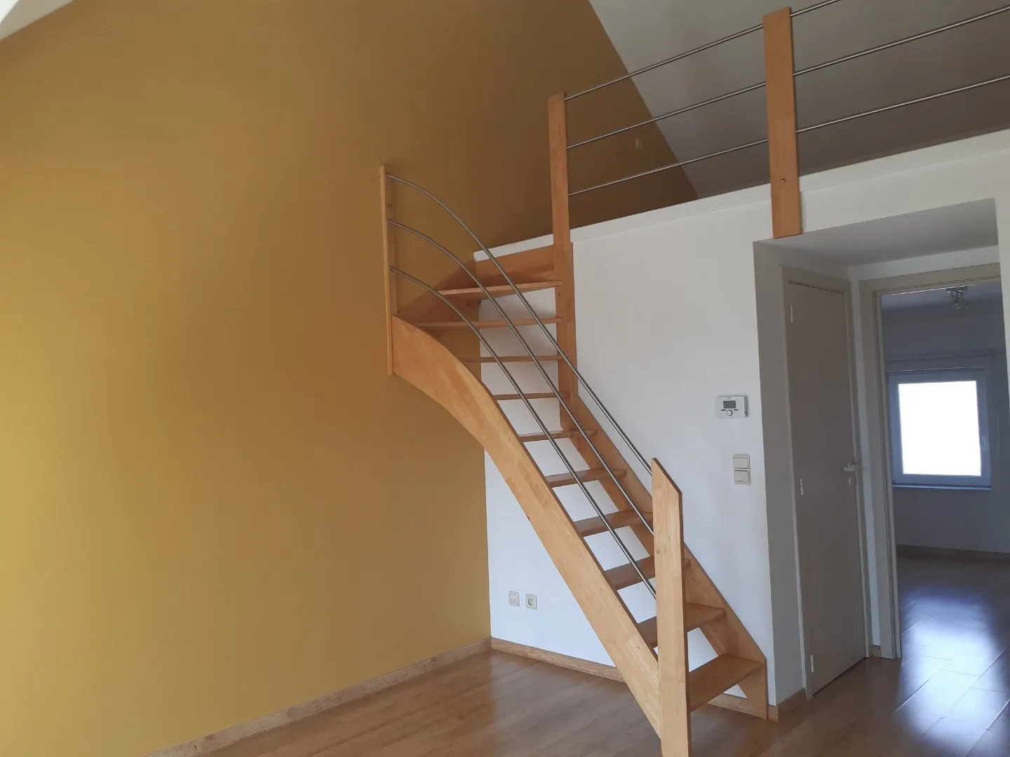 Dit eigentijds duplex-appartement bevindt zich in een kleine residentie, uitkijkend op de Leie.