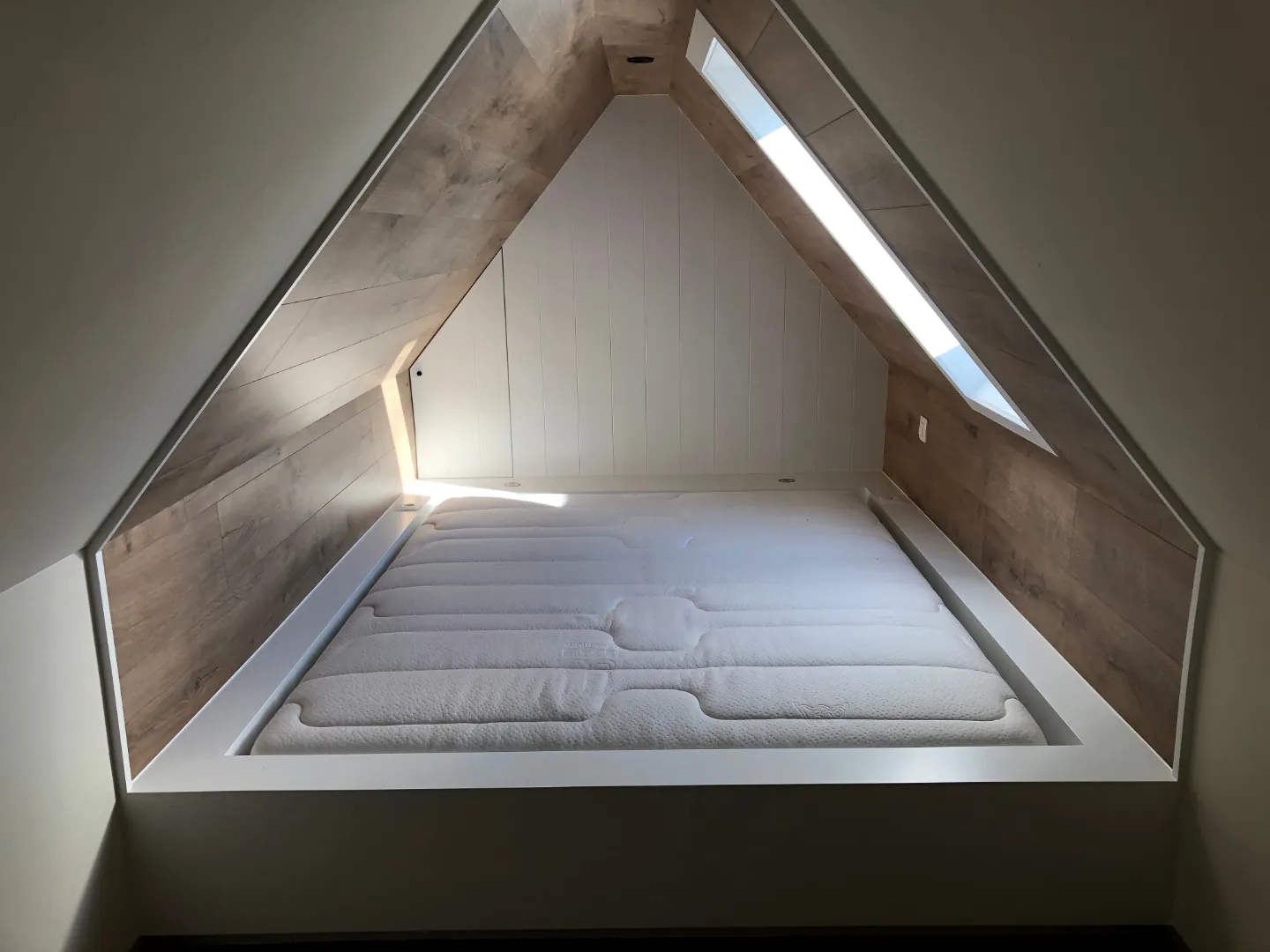 De mezzanine werd van sfeervolle ledverlichting voorzien, deze kan bijkomend gedimd worden.