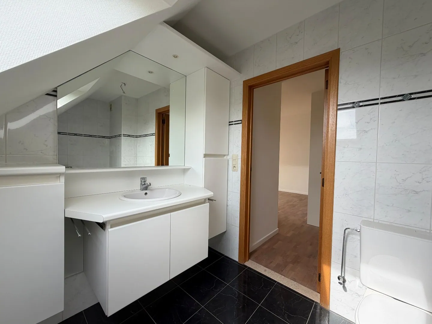 De stijlvolle inkomhal straalt eveneens ruimte uit en biedt toegang tot het gastentoilet.