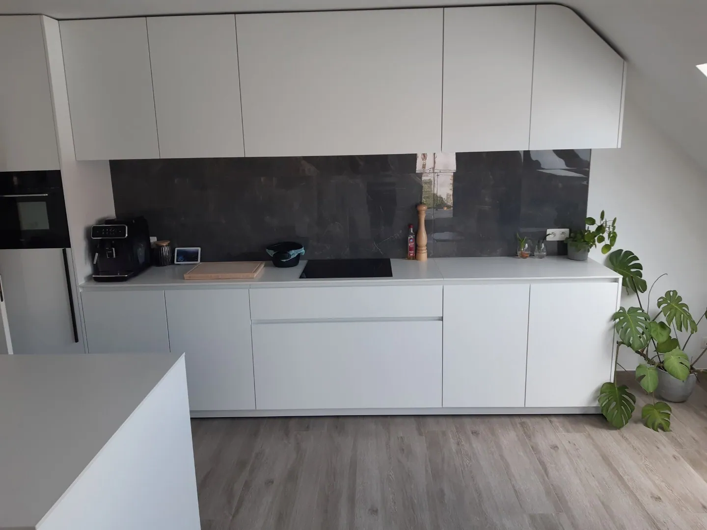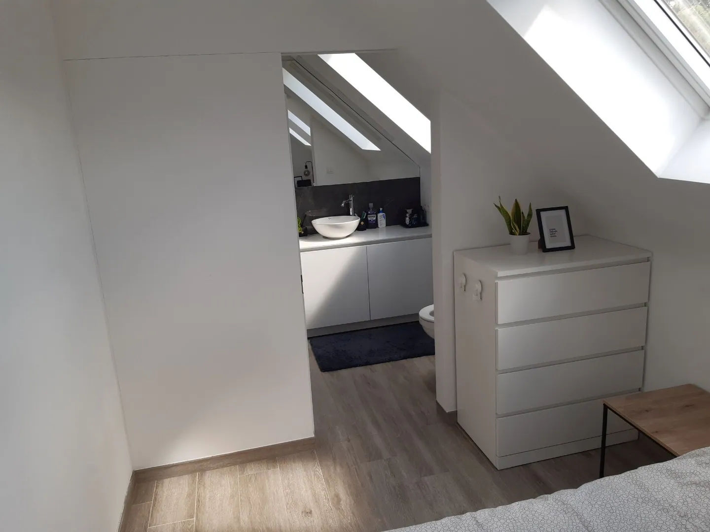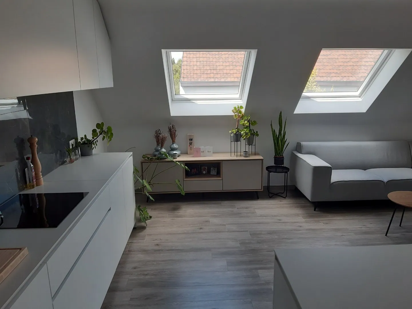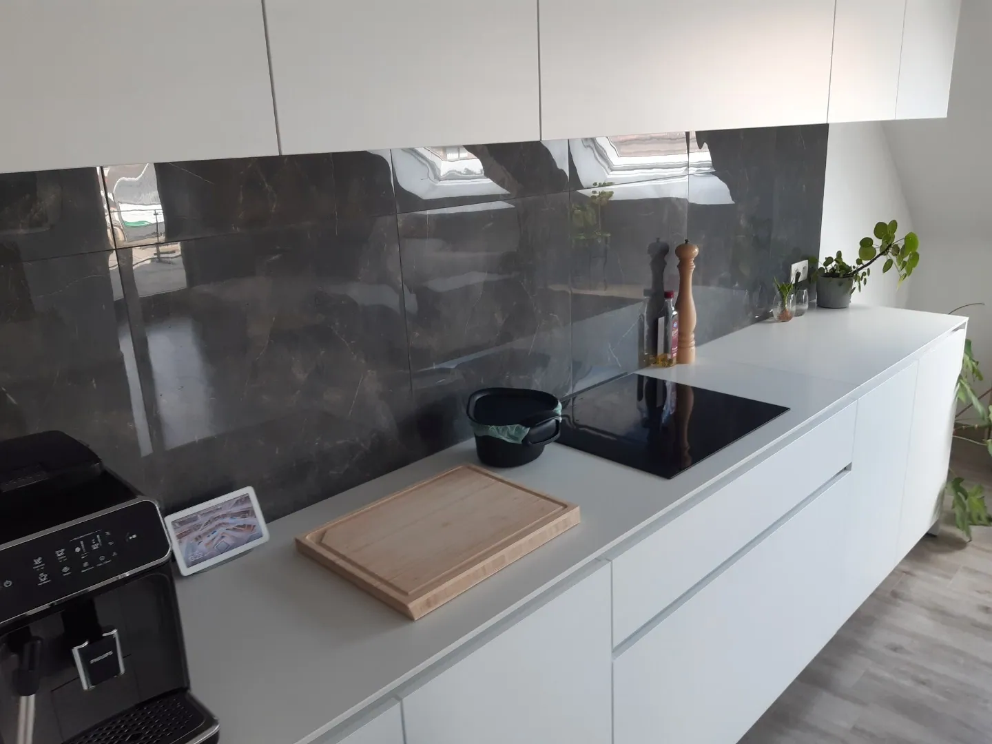 Aangename leefruimte. Eigentijdse keuken (Luxhome). Aangename slaapkamer met aansluitend een eigentijdse badkamer.