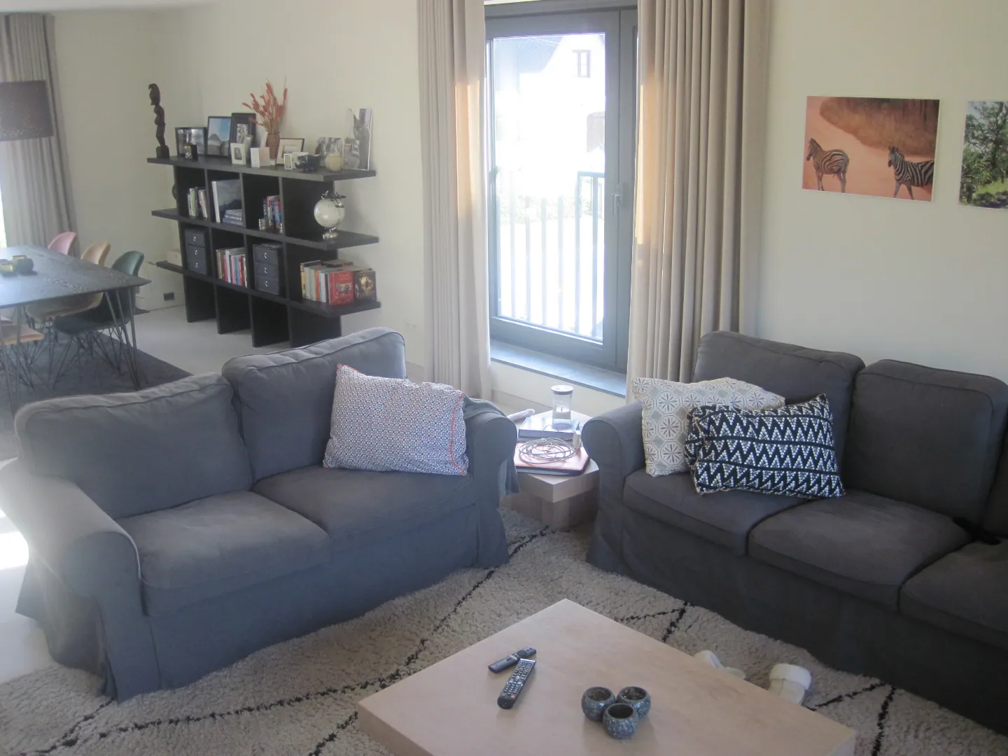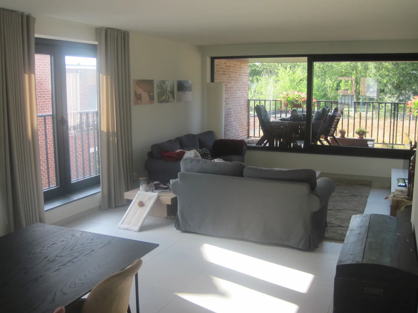 Op het eerste verdiep van het ruime duplex-appartement (bewoonbare oppervlakte 140 m² !) treft u een zonnig en modern woon- en leefgedeelte.