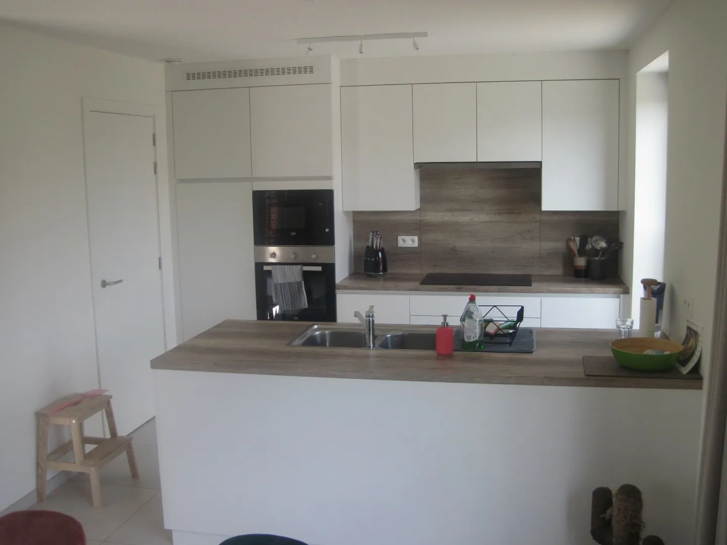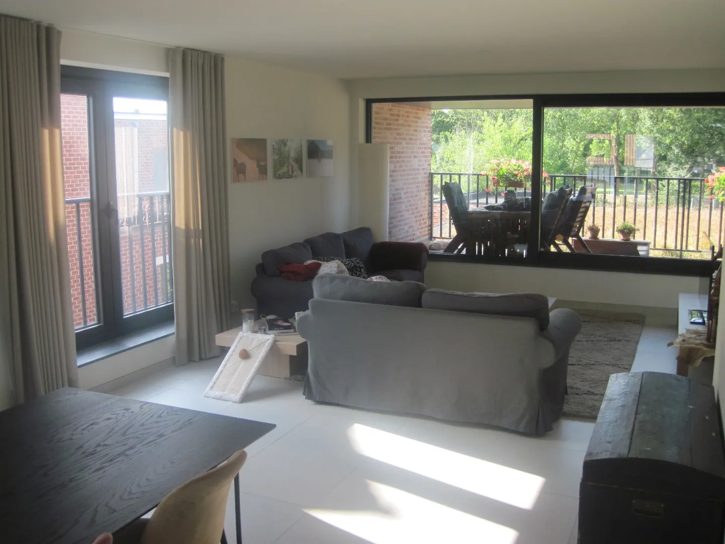 Op het eerste verdiep van het ruime duplex-appartement (bewoonbare oppervlakte 140 m² !) treft u een zonnig en modern woon- en leefgedeelte.