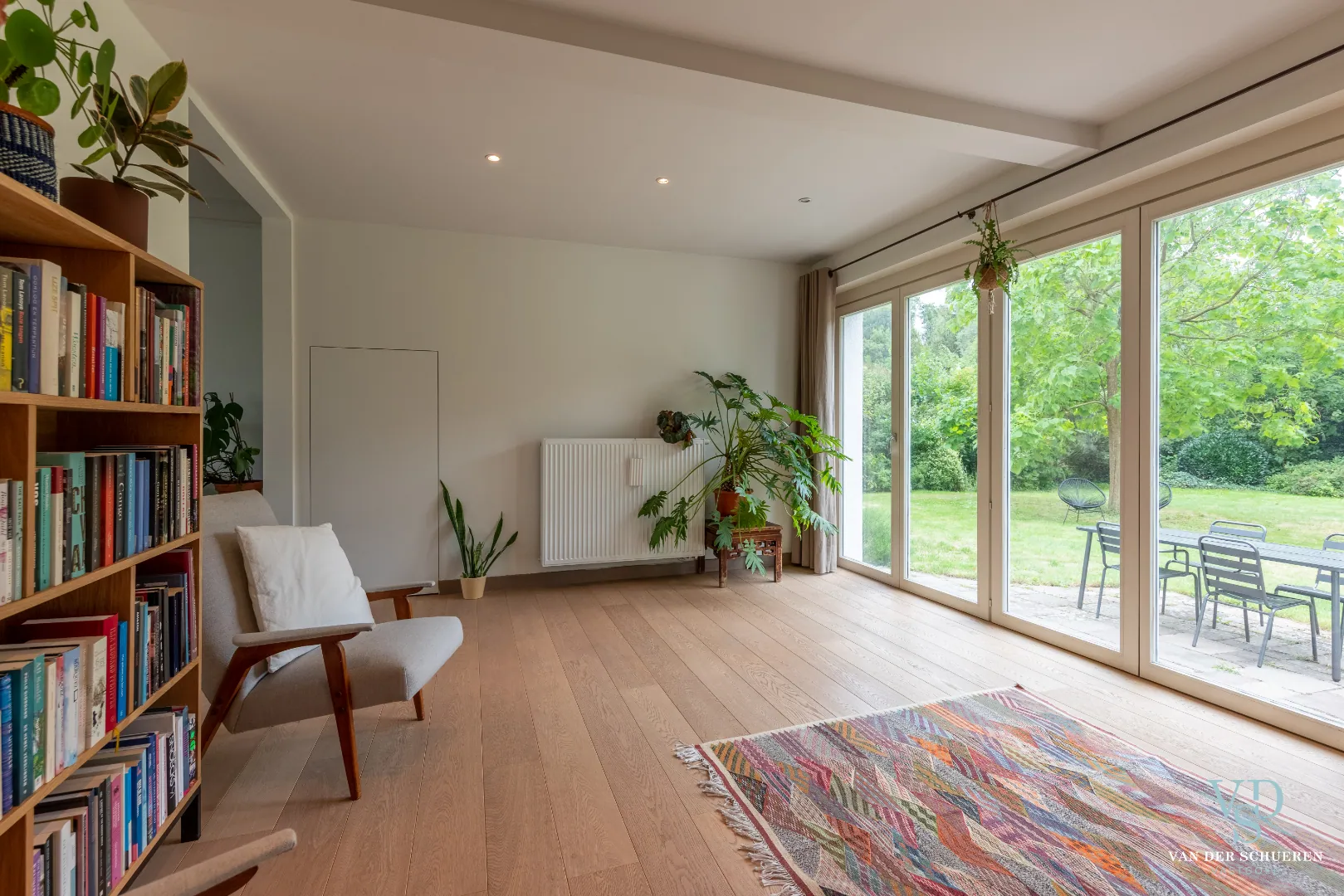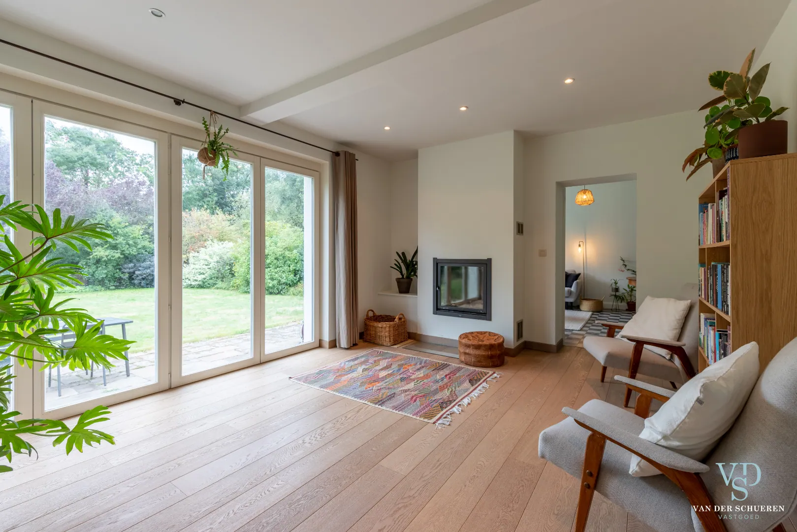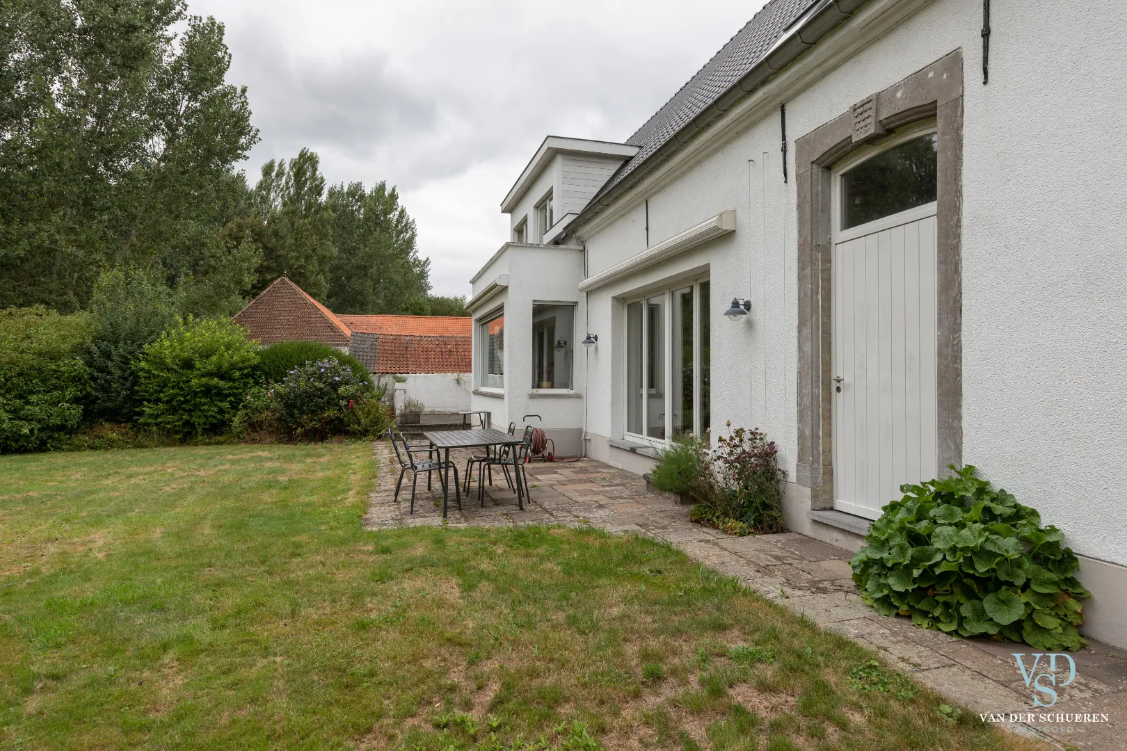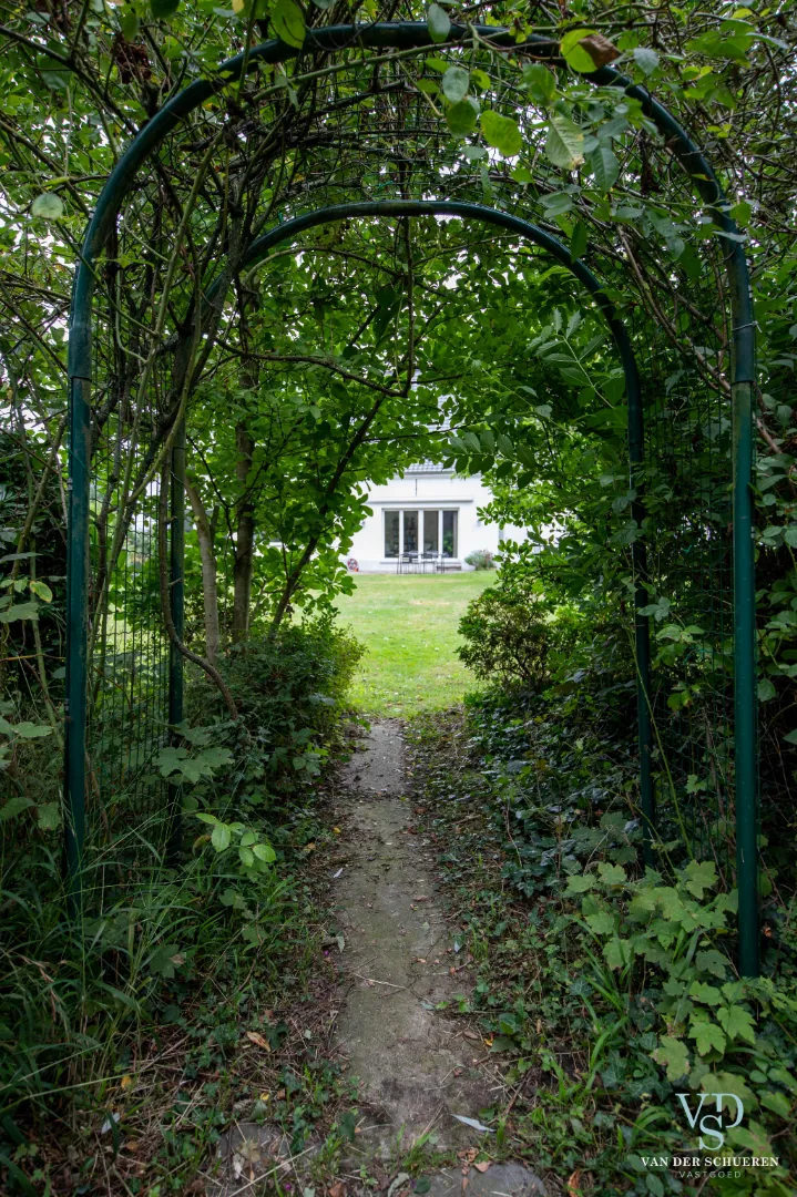 Het zuidelijk georiënteerde terras kijkt uit op de ruime tuin die omzoomd wordt door groen. Achteraan de tuin stroomt de Peerdestokbeek, waarlangs even verderop de oorspronkelijke middeleeuwse watermolen staat, die omringd wordt door een groot bos. Door de ligging in de beschermde Zwalmvallei bevind je je meteen in een oase van natuur en rust.
