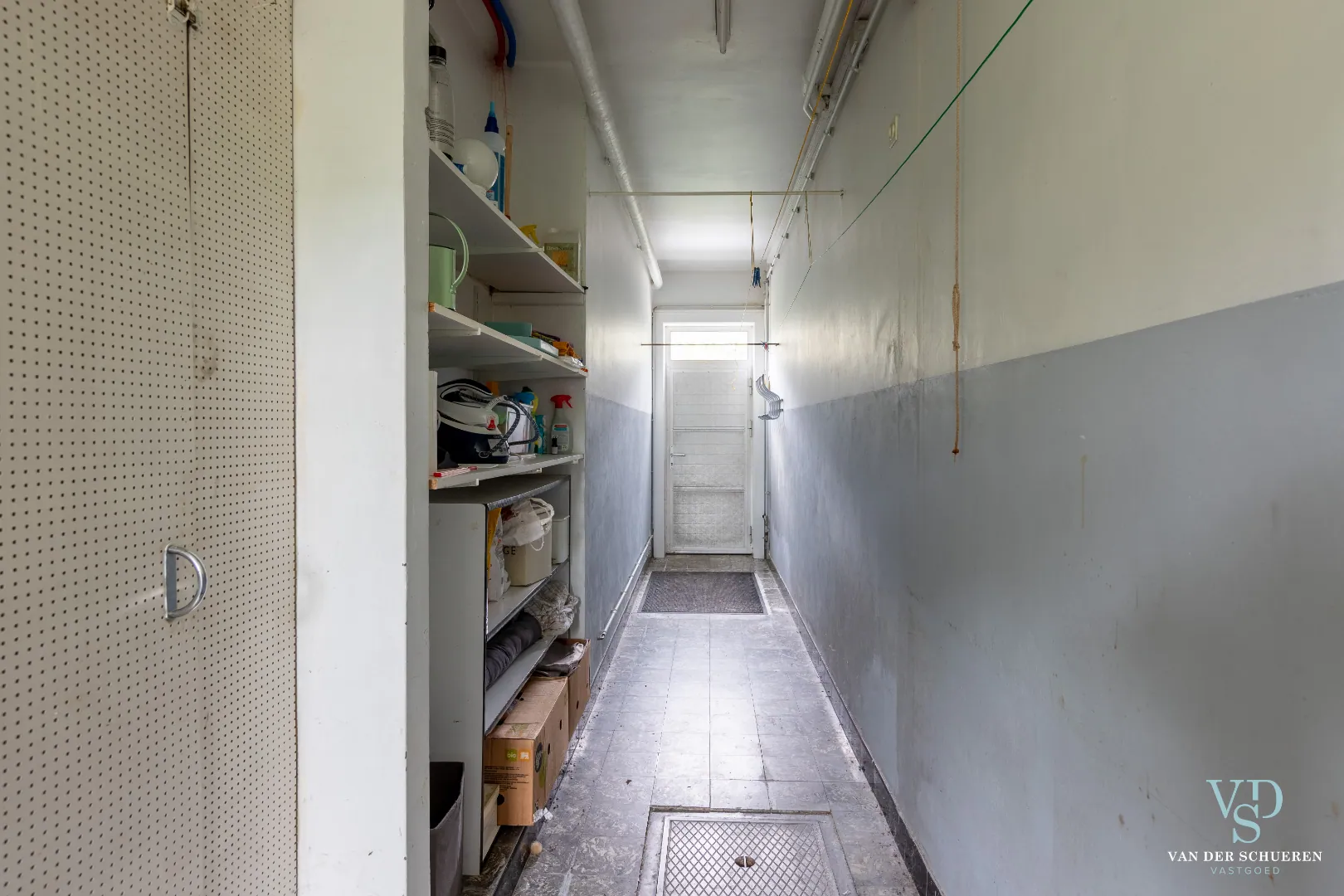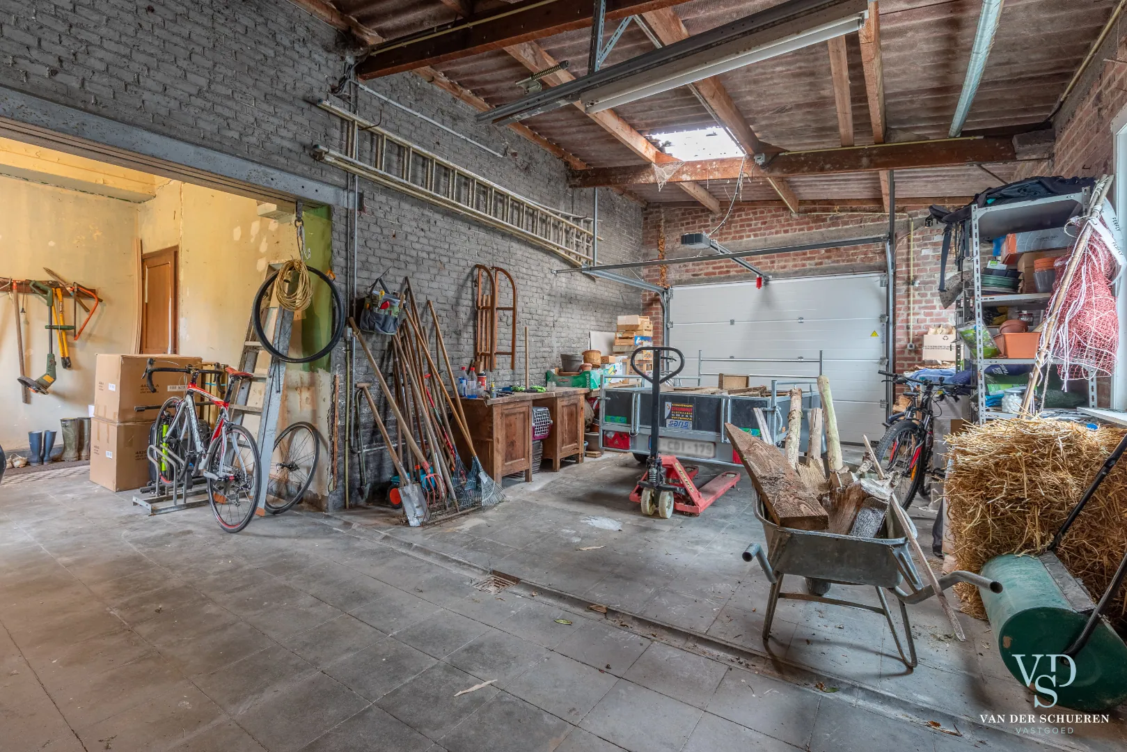 Het gelijkvloers niveau beschikt over een leefruimte én salon met authentieke materialen, een ingerichte keuken; badkamer (met bad en douche); ruim en stijlvol bureau; enige ondersteunende ruimtes (hobby, ...) en een grote garage (met 2 geautomatiseerde garagepoorten).