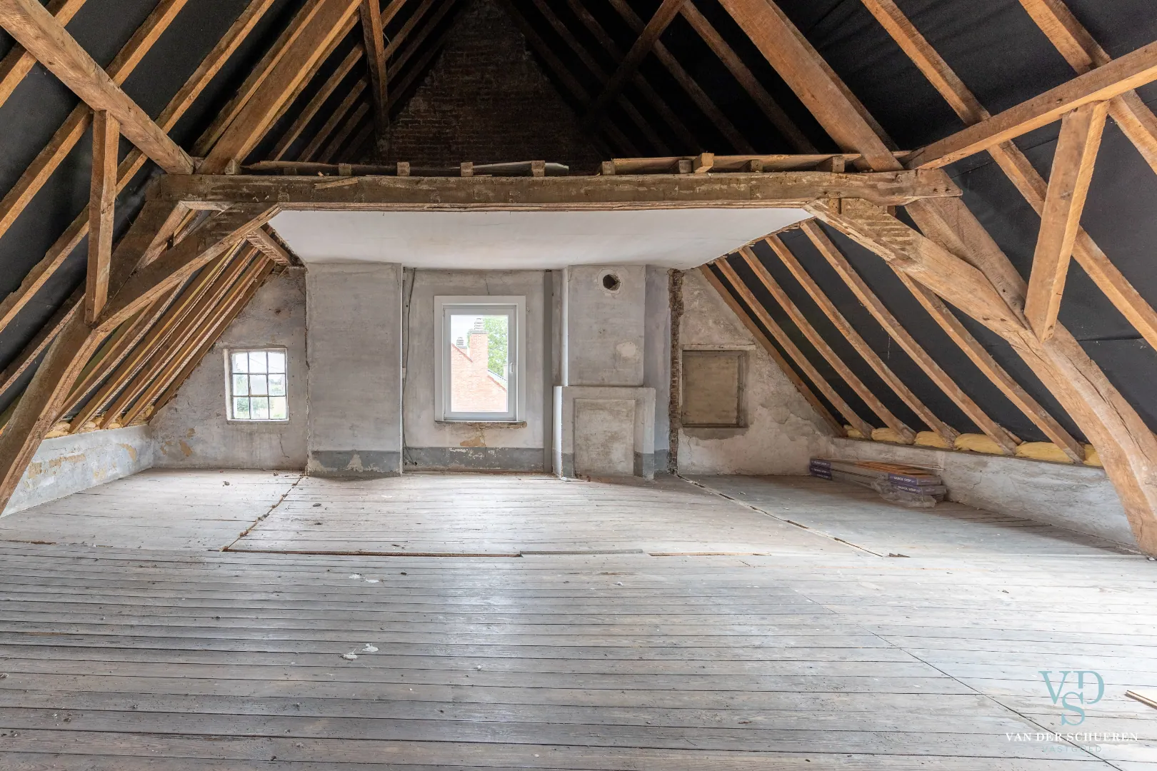 Op de verdieping treffen we, naast een badkamer, 5 bijzonder ruime slaapkamers én een bijzondere (zolder)ruimte met behoud van de originele structurele elementen.