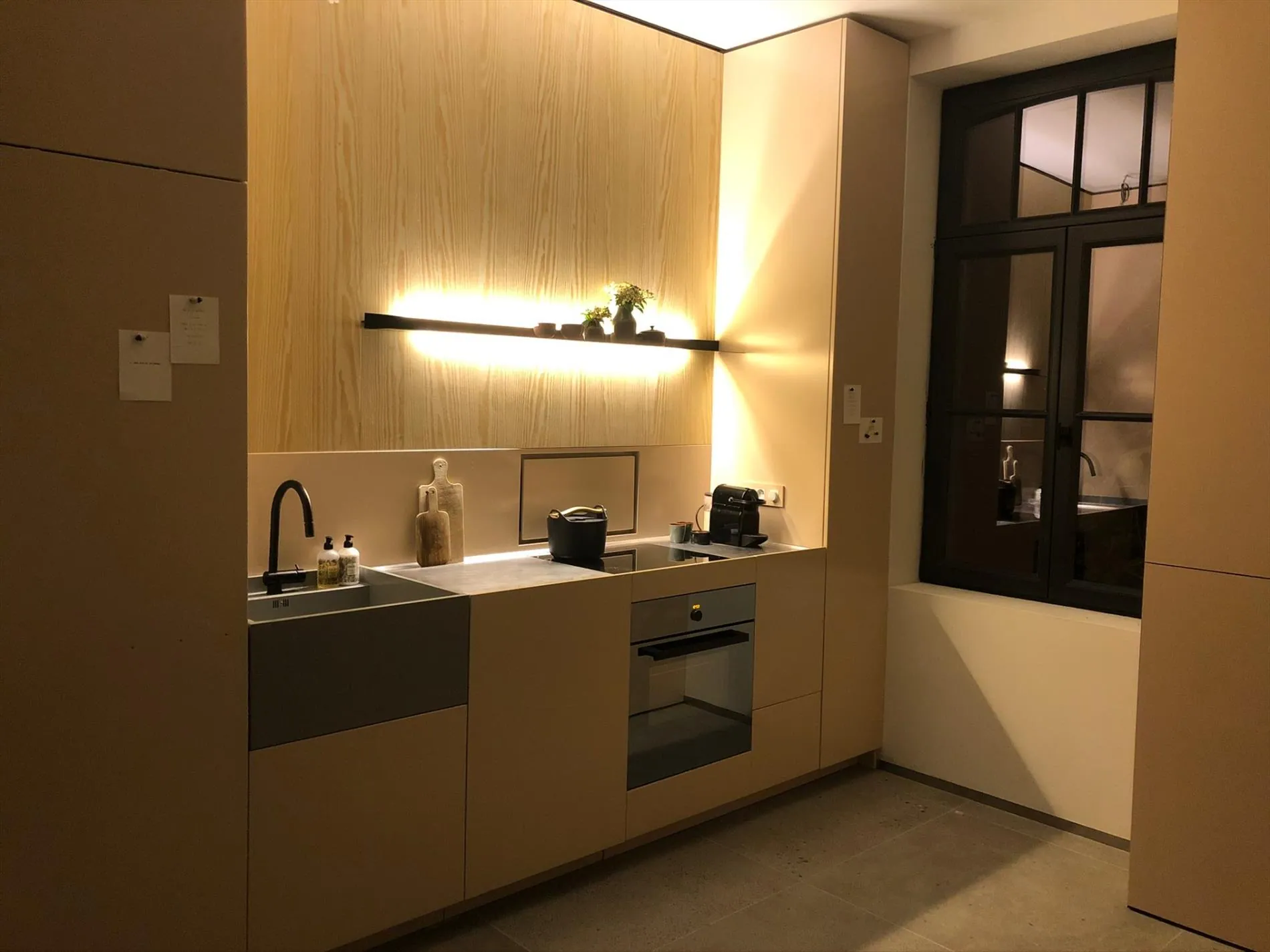 - een strakke designkeuken, geïntegreerd met een eigentijdse woonkamer (eveneens toegang tot het aanpalende koertje);
