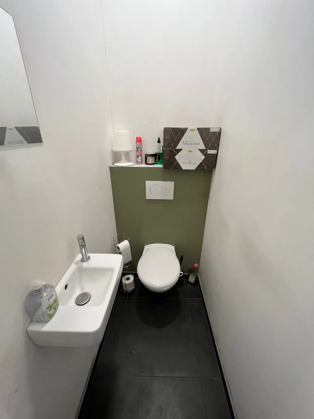 Naast de multifunctionele ruimte langsheen de Scheldestraat is er eveneens een afzonderlijk toilet en een afgescheiden privatieve ruimte (bureel met kitchenette) aanwezig.