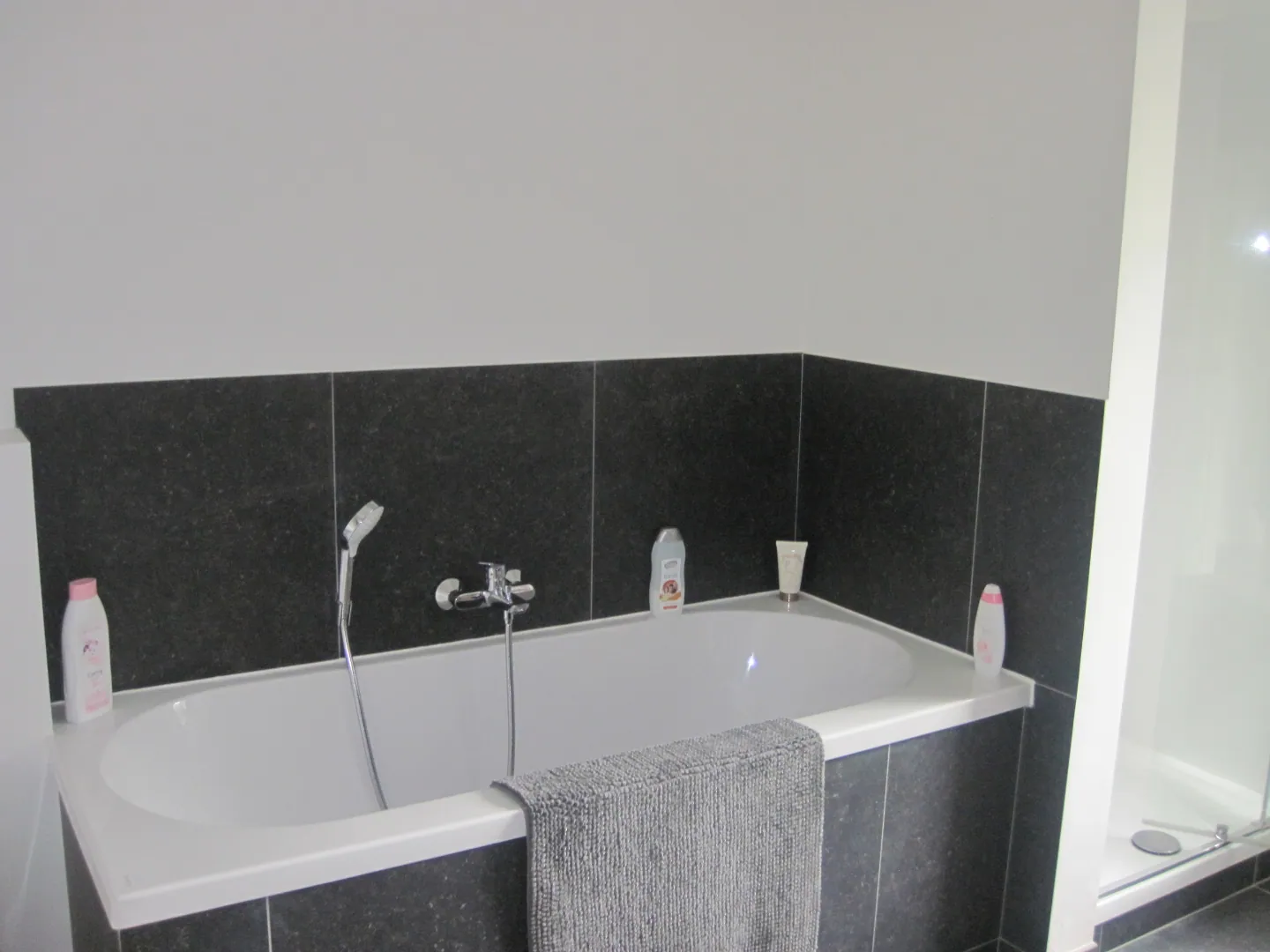 - de eerste verdieping telt een ruime slaapkamer met een afzonderlijke grote badkamer (ligbad én douche);