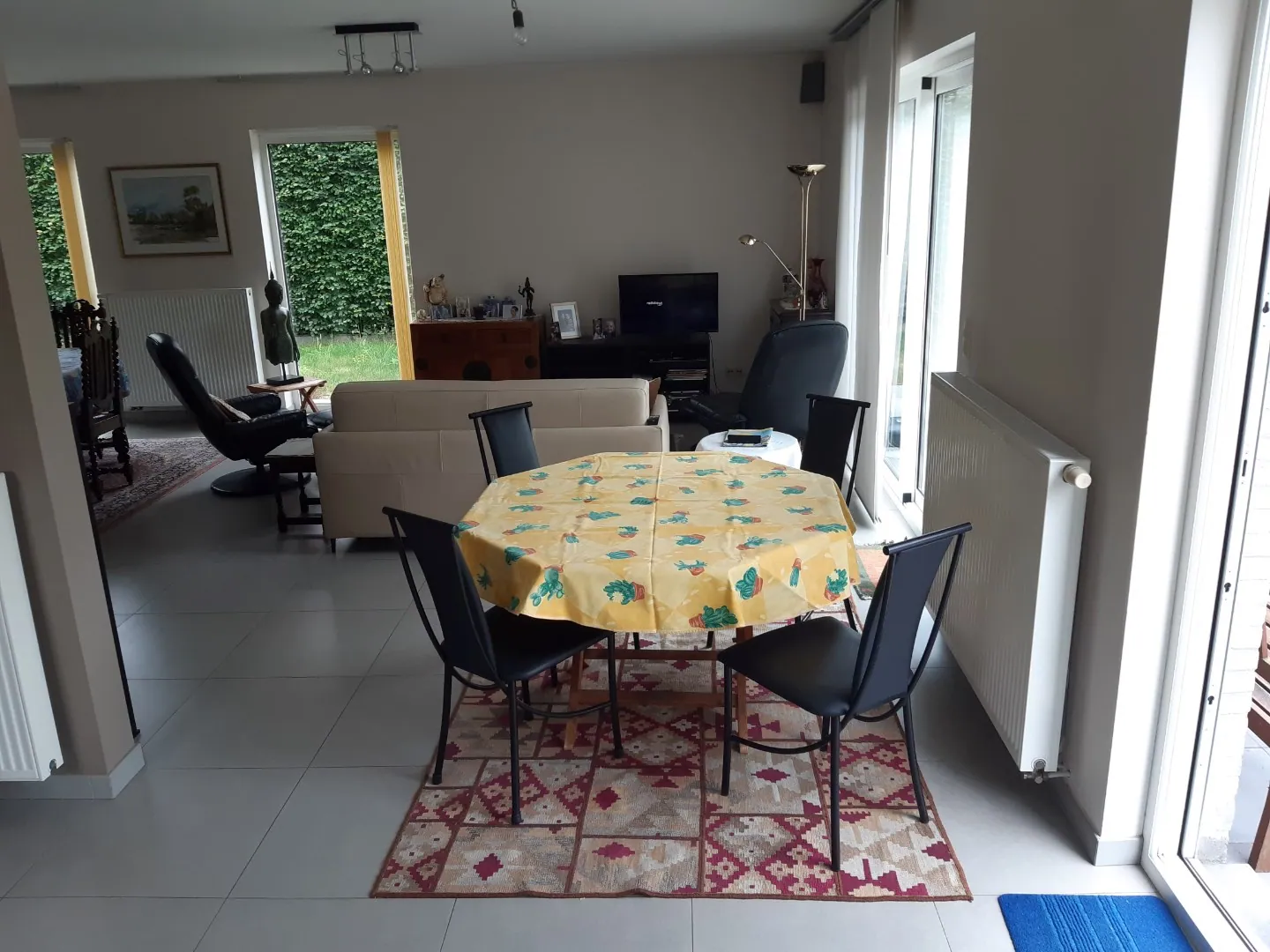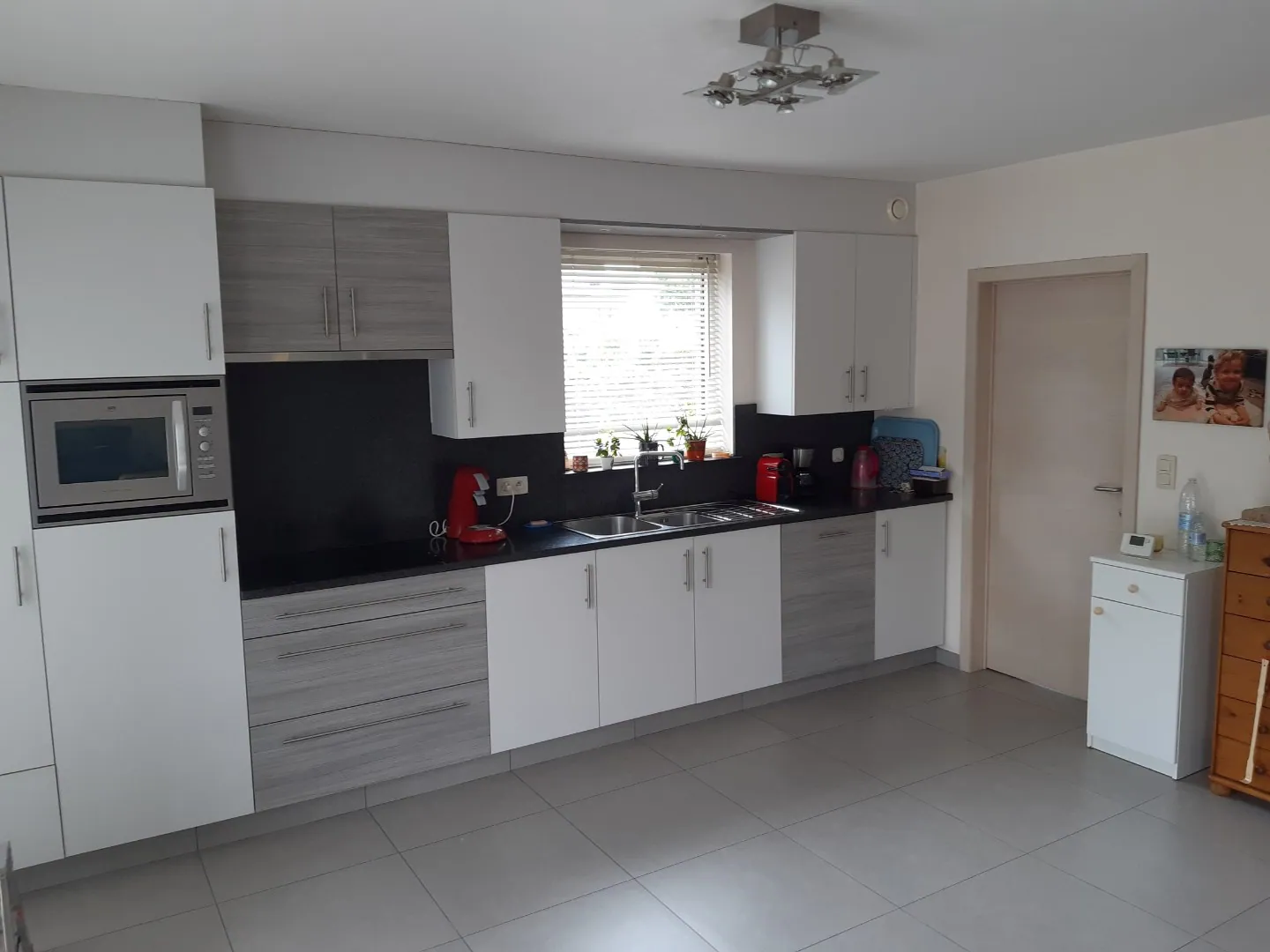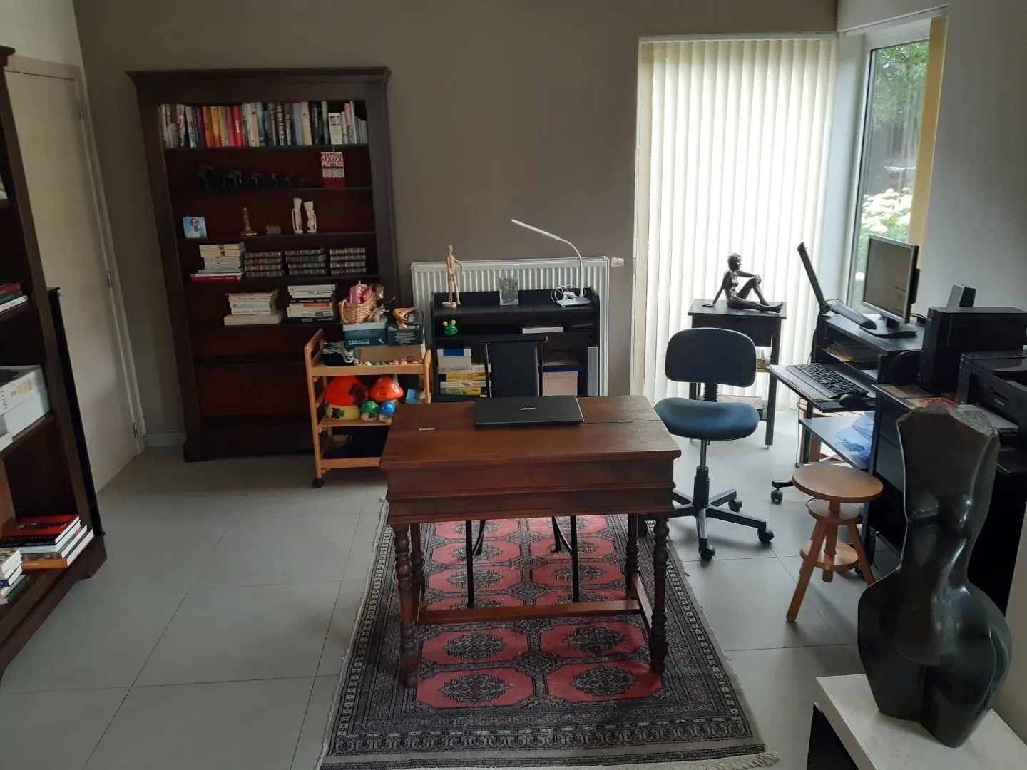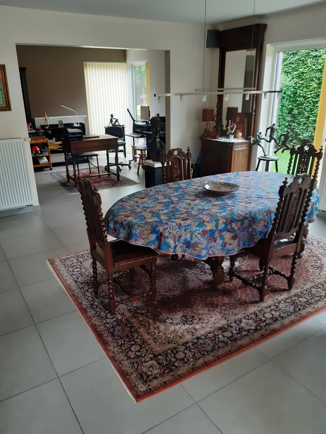 Gelijkvloers niveau telt een zeer ruime leefruimte, met een belendende bureauruimte én open keuken.