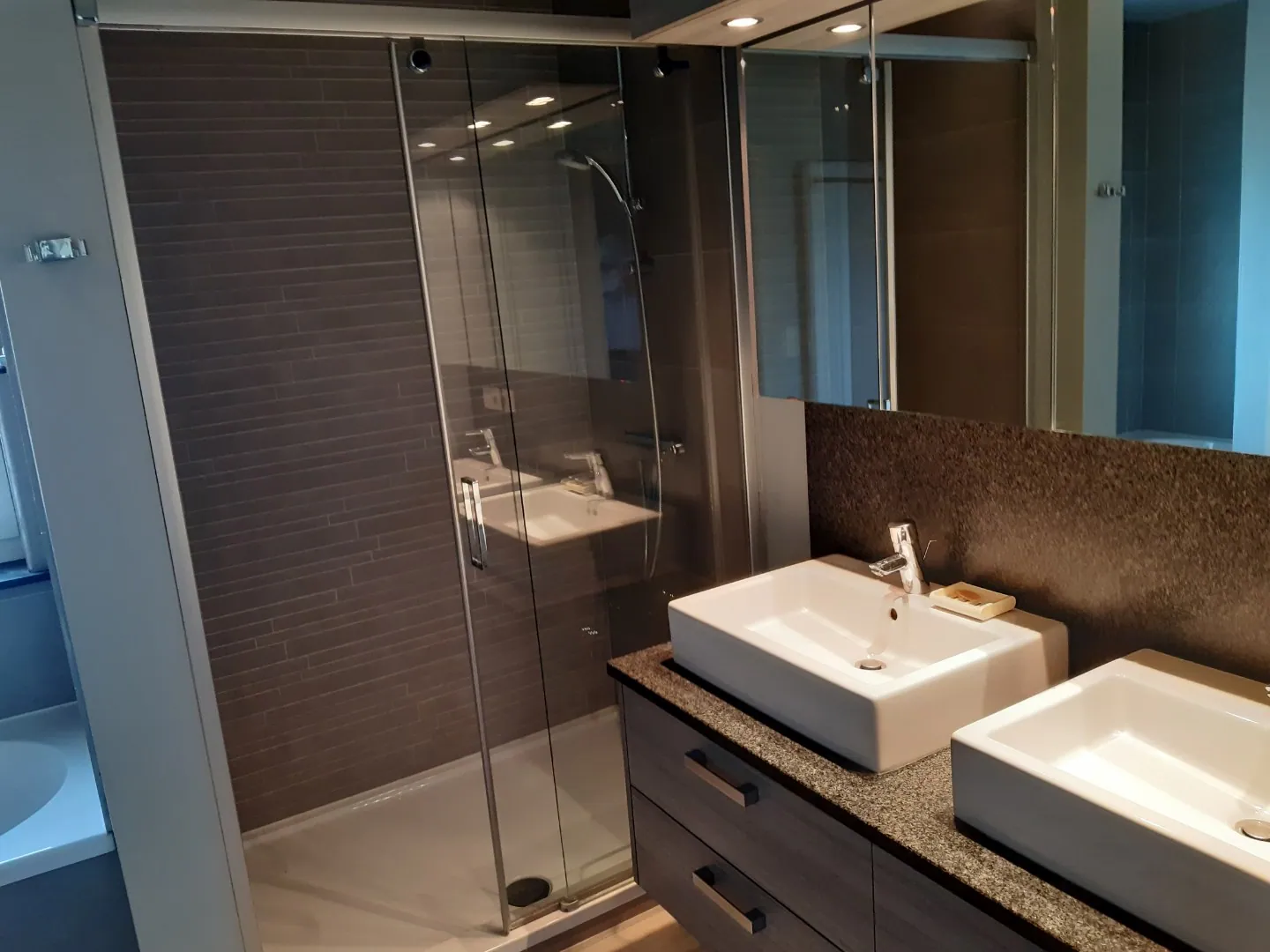 De verdieping beschikt over 3 zeer ruime slaapkamers, en een praktische badkamer (met bad én douche) en een afzonderlijk toilet.
