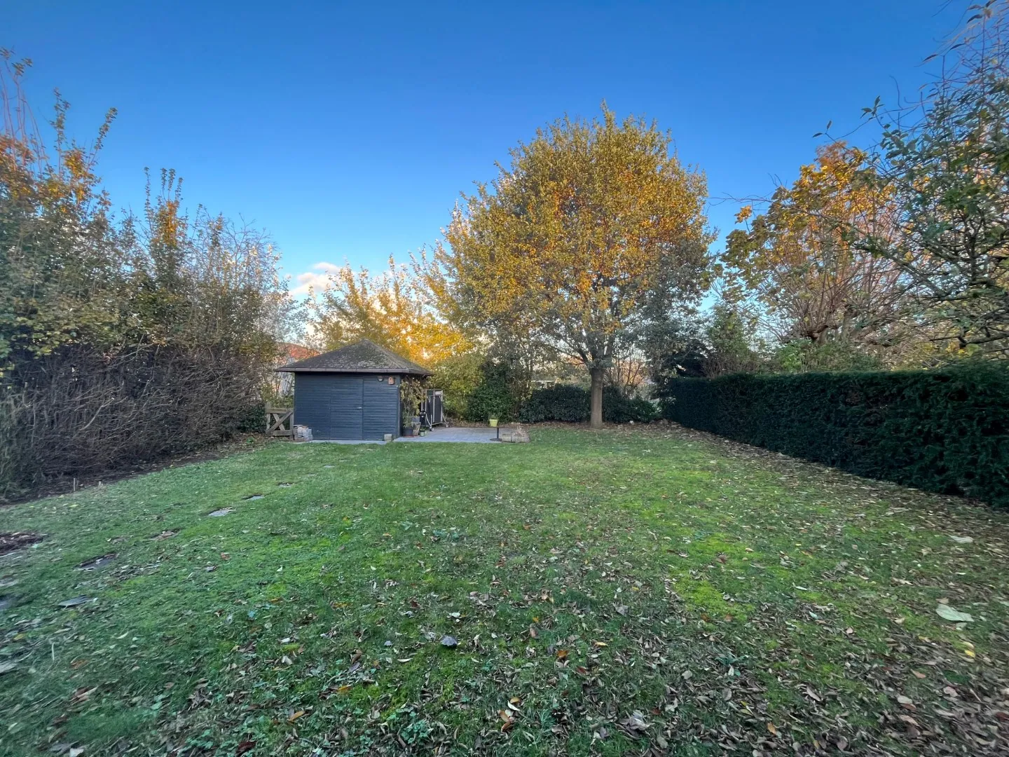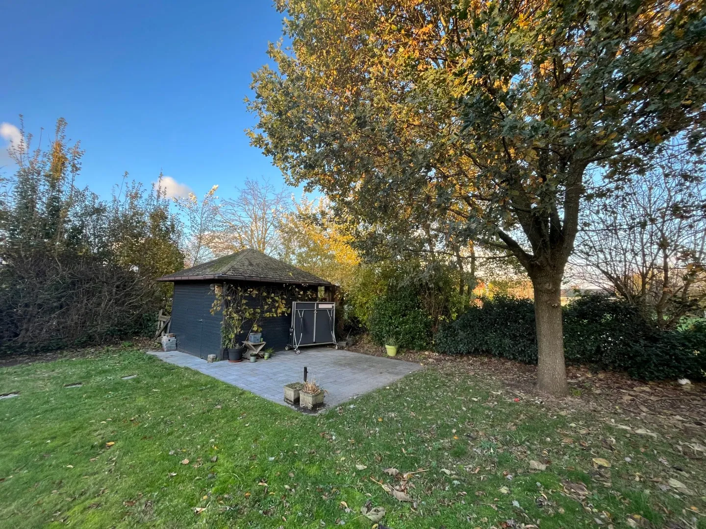 - aangename, praktisch te onderhouden tuin met tuinhuis én extra bergruimte onder het afdak