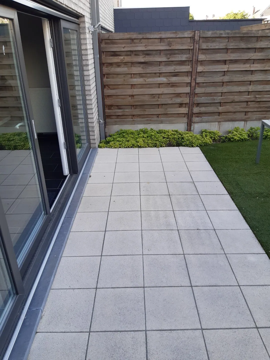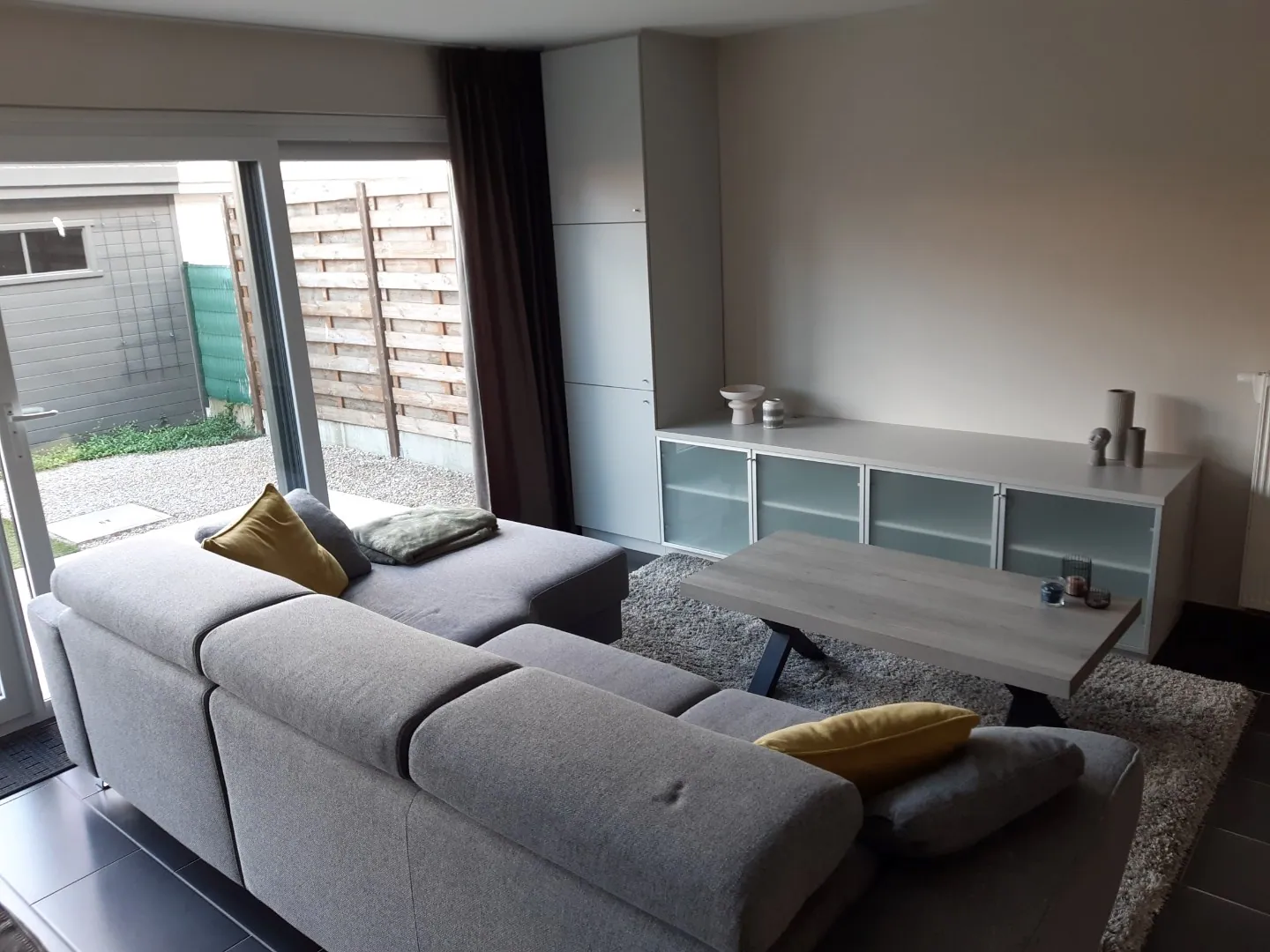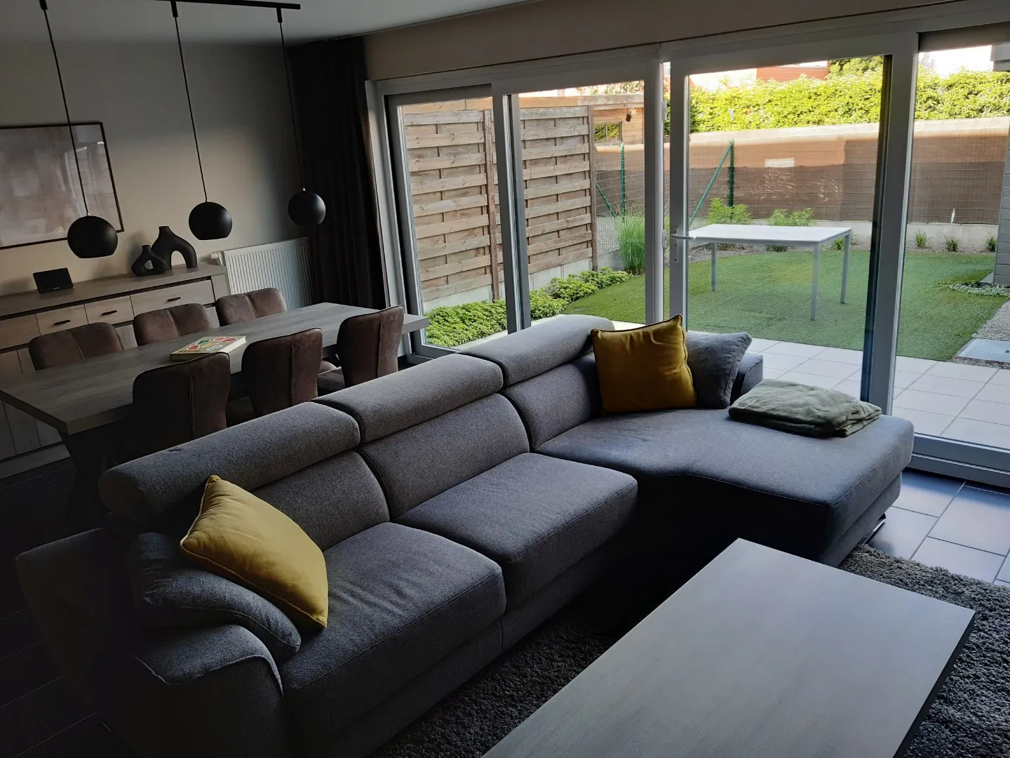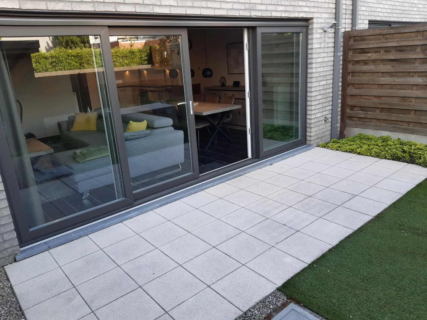 Centraal in de woning bevindt zich de lichtrijke leefruimte, aansluitend op het zonneterras met zicht op de aangename, onderhoudsvriendelijke tuin.