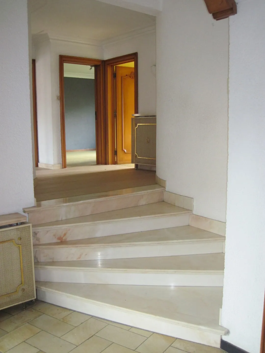 De stijlvolle inkom vormt de verbinding tussen een grote, lichtrijke leefruimte en de leefkeuken enerzijds en het privatieve gedeelte (met badkamer en 3 slaapkamers) anderzijds.