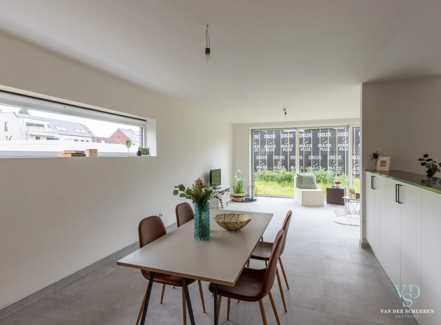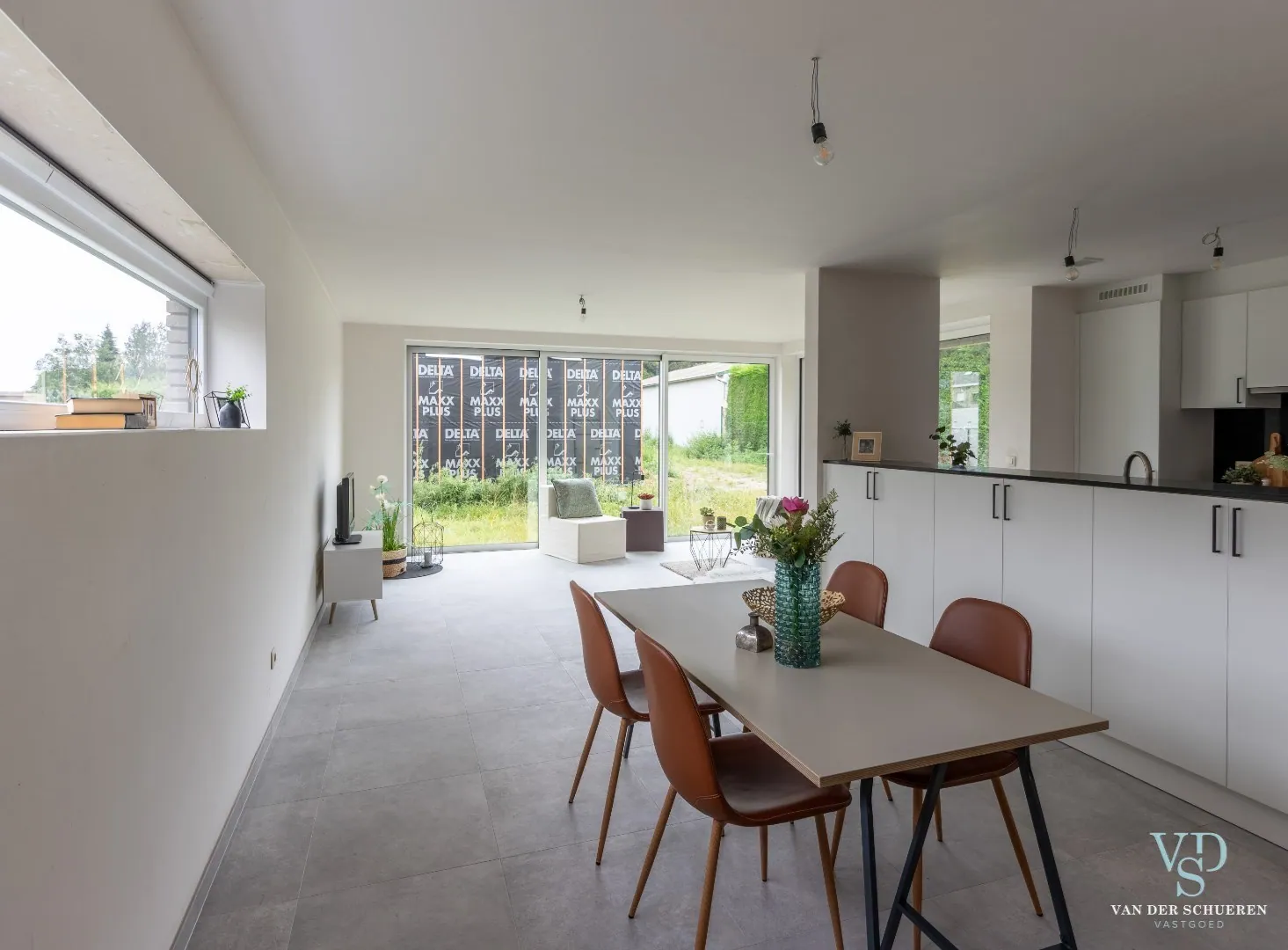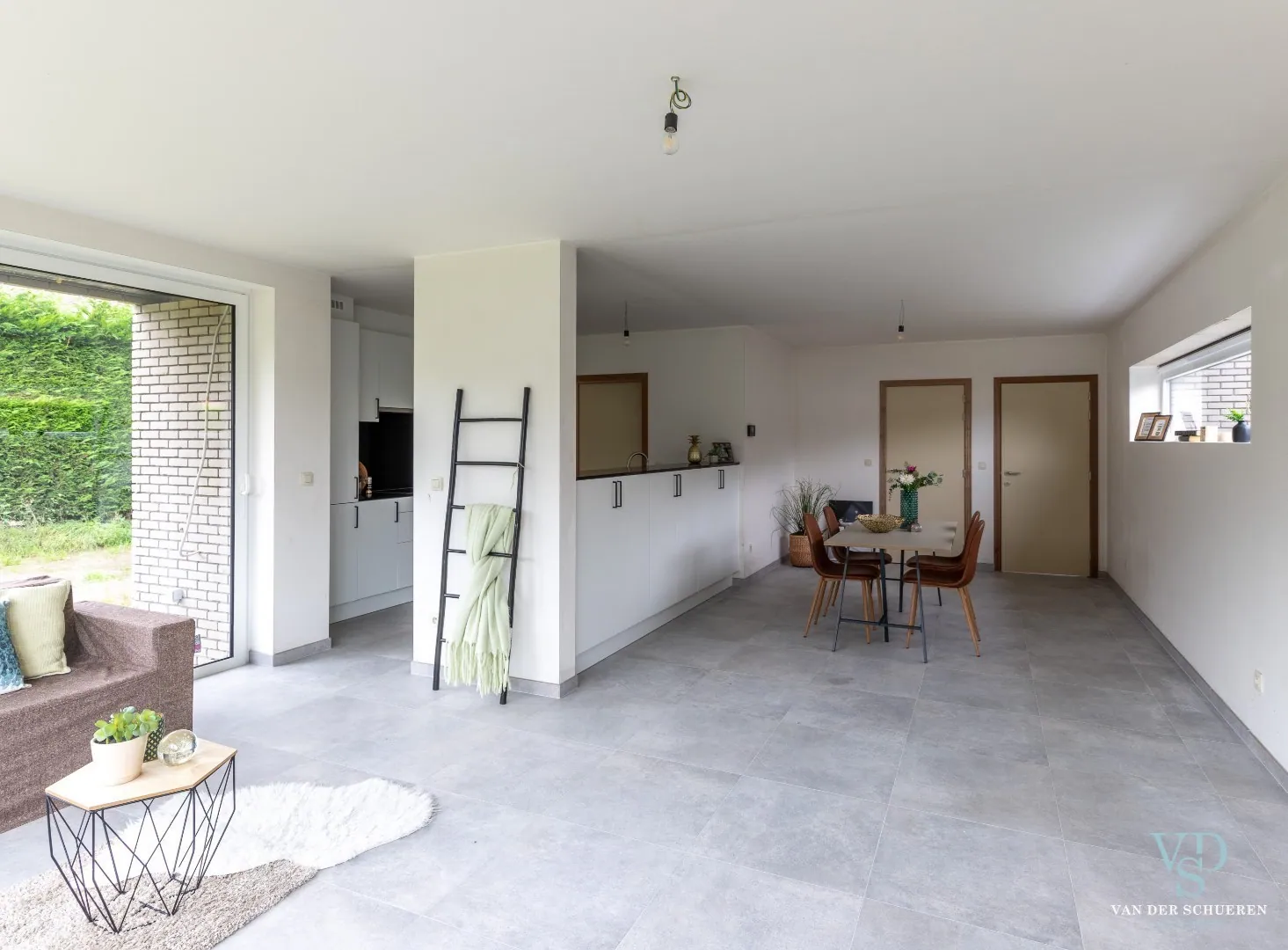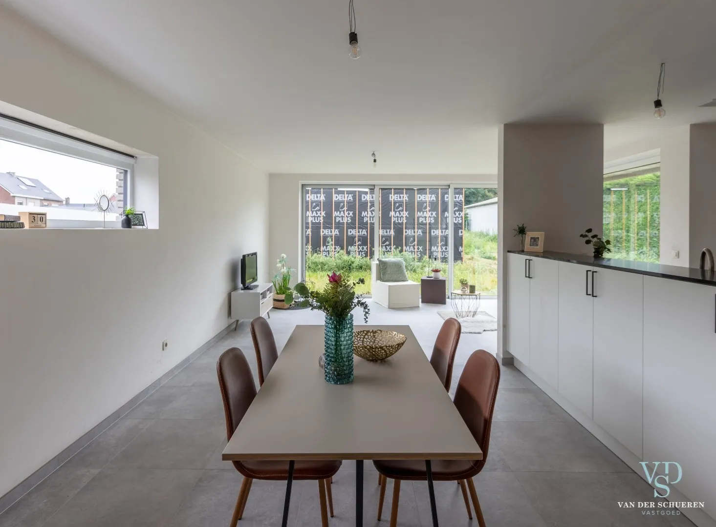 Praktische 'Open Bebouwing', met een inpandige garage die aansluit op de wasplaats/berging en eigentijdse keuken. Er is een ruime zit- en eetplaats, alsook een afzonderlijk bureau.