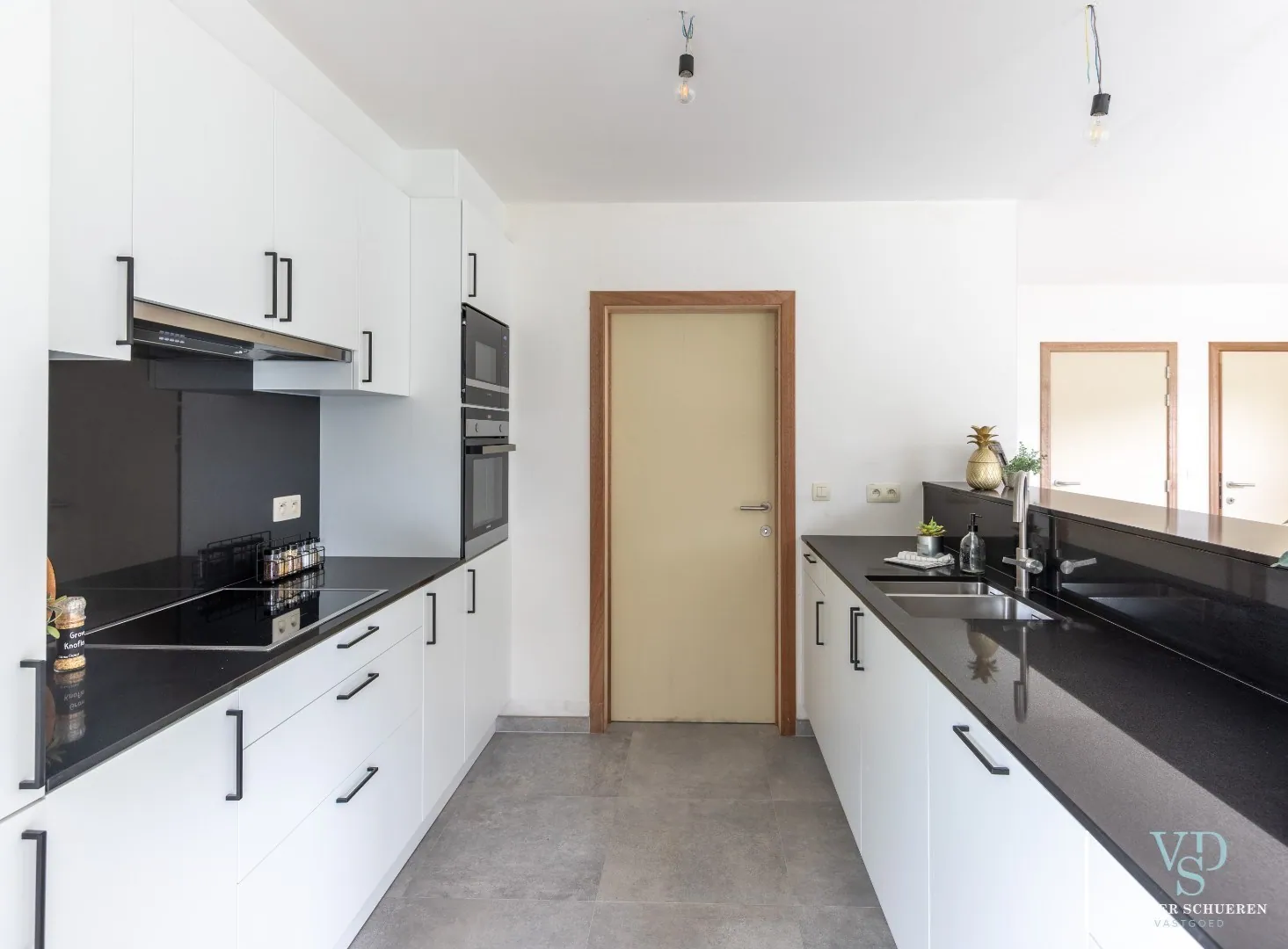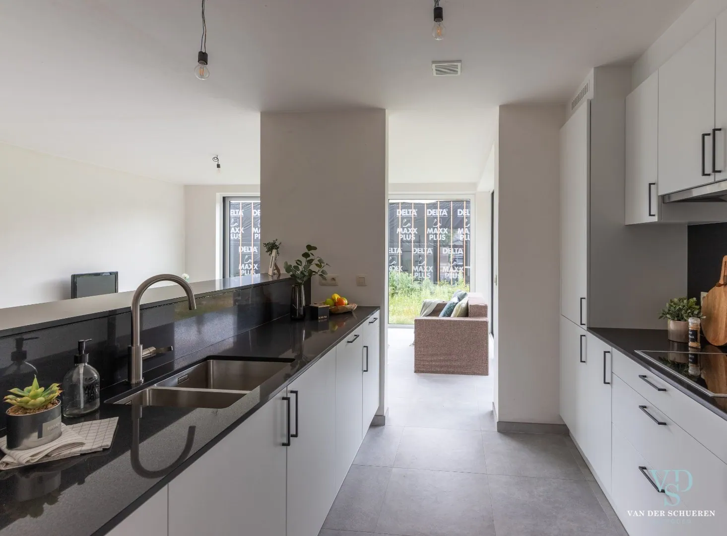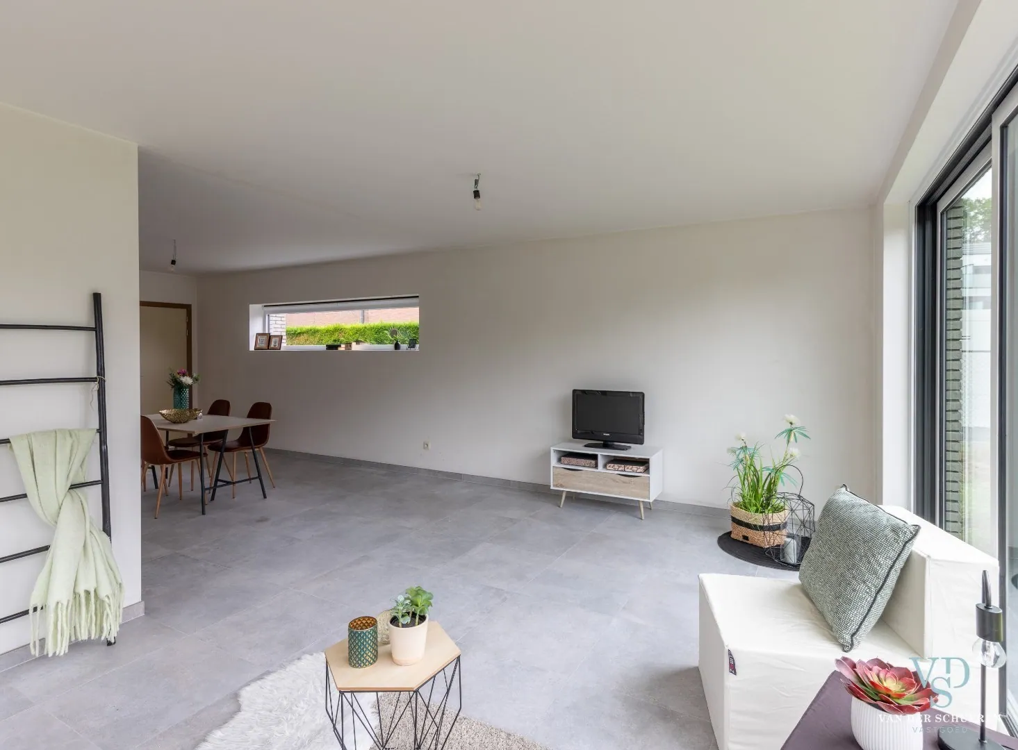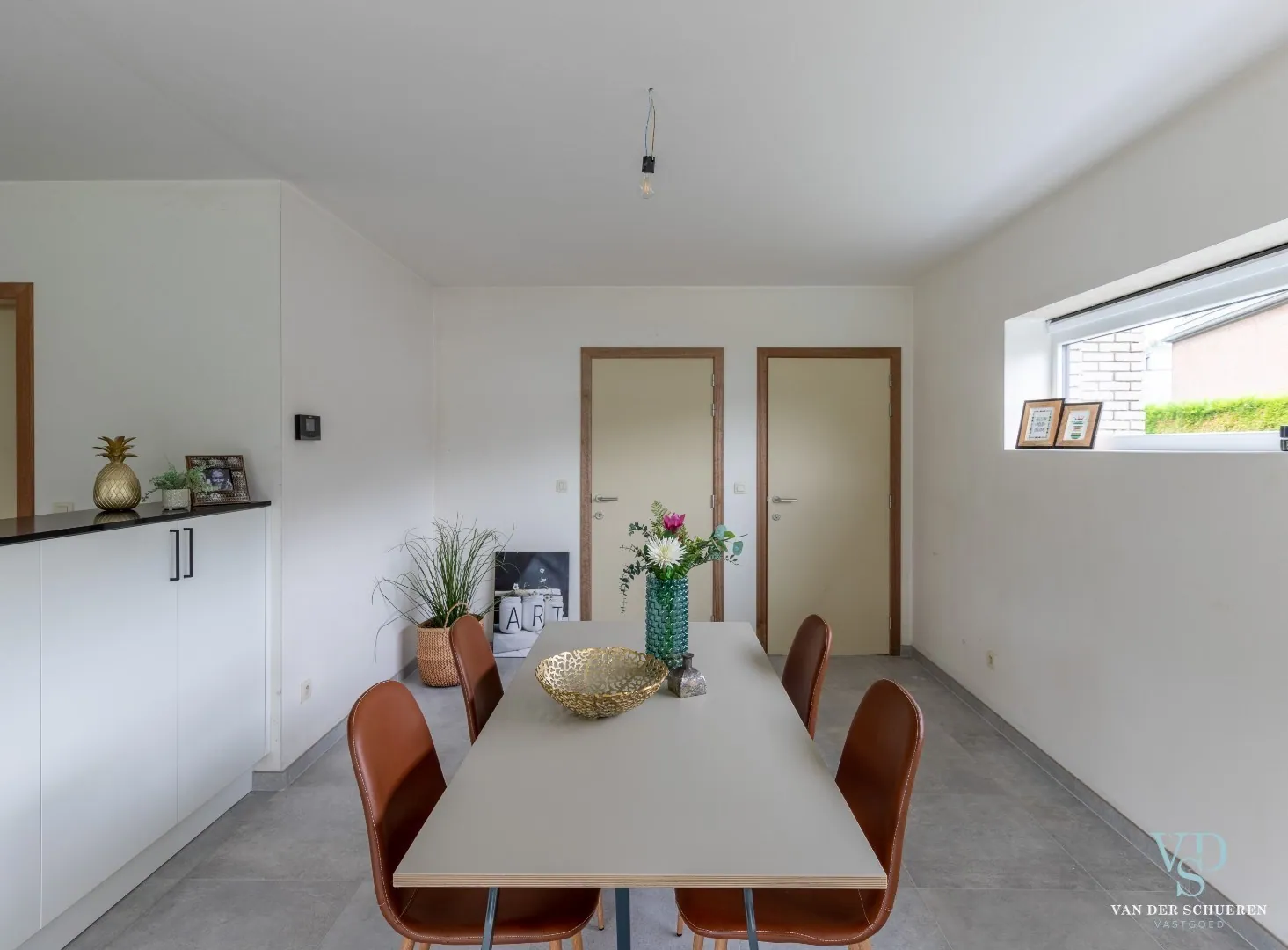 Praktische 'Open Bebouwing', met een inpandige garage die aansluit op de wasplaats/berging en eigentijdse keuken. Er is een ruime zit- en eetplaats, alsook een afzonderlijk bureau.