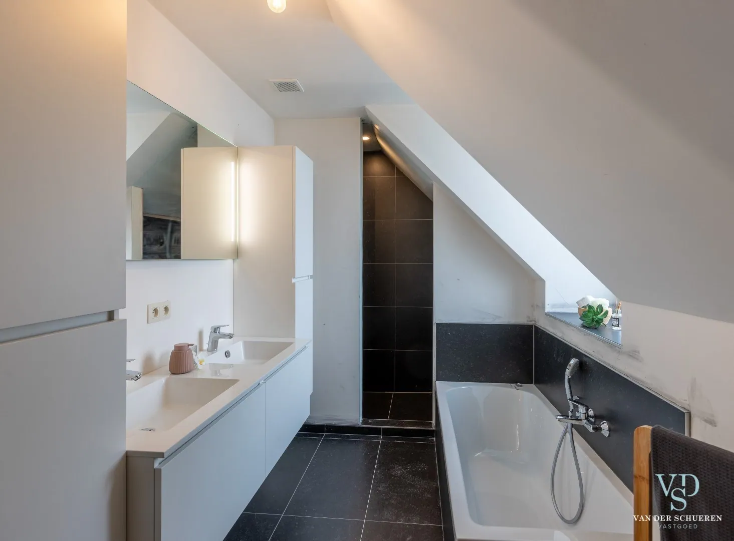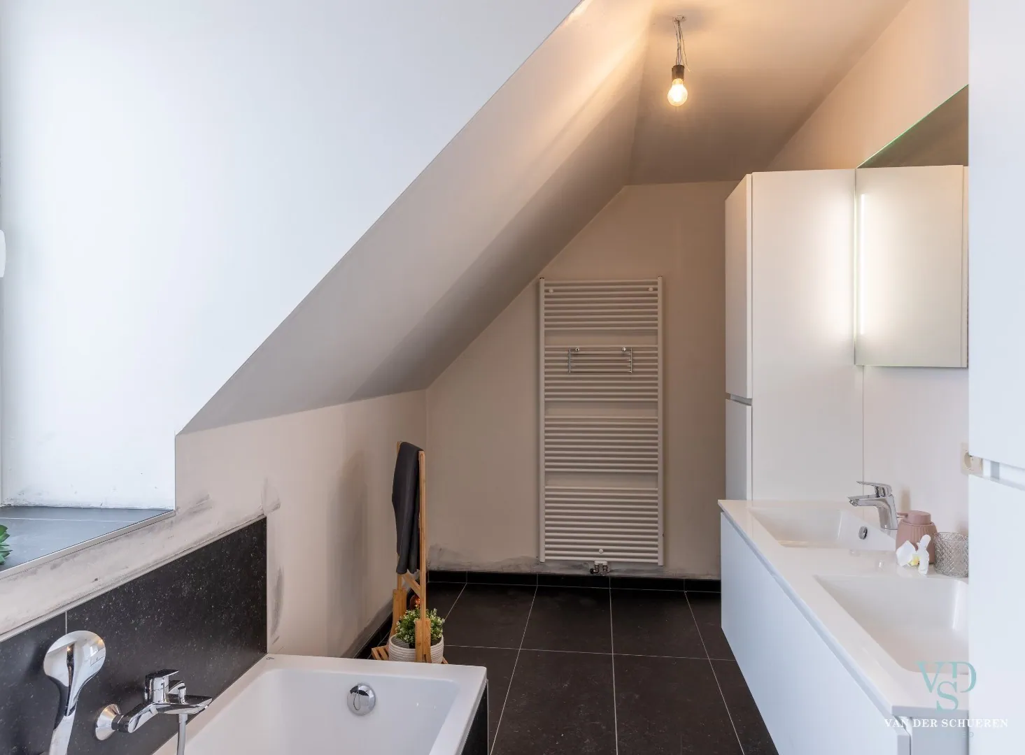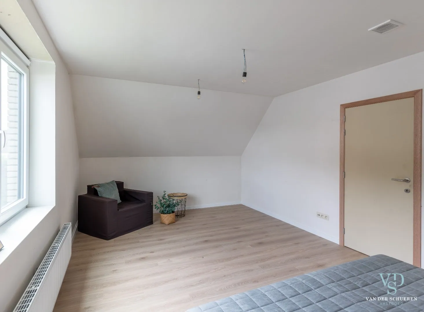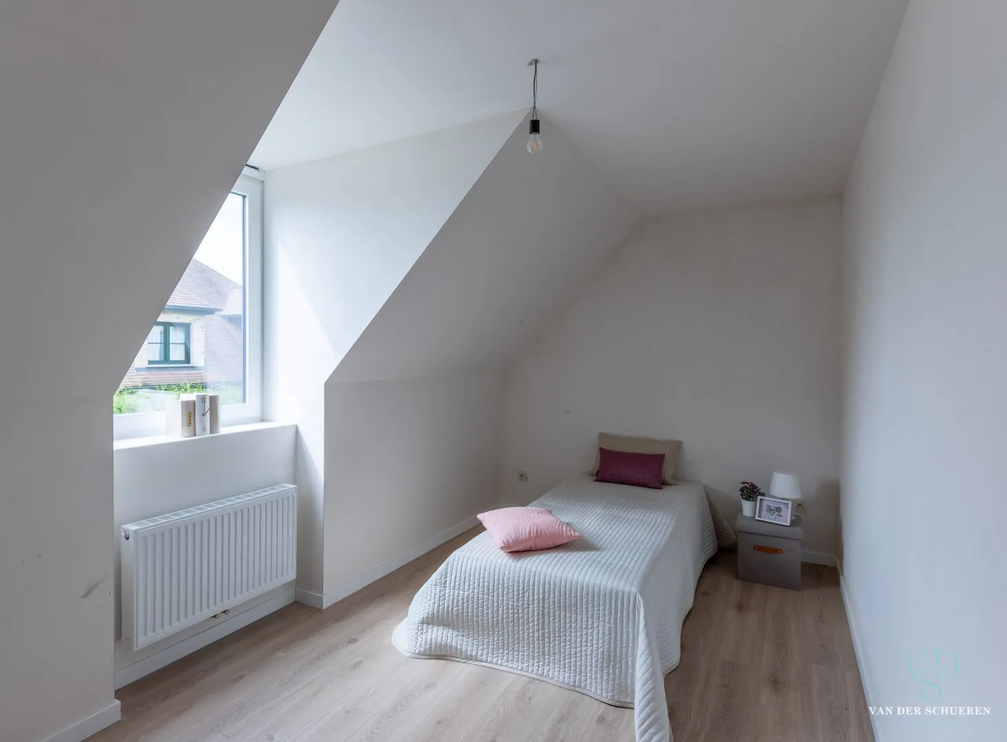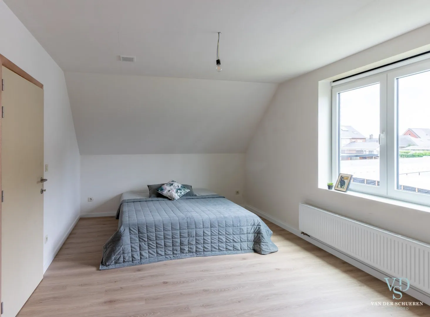 De verdieping telt 3 aangename slaapkamers, een badkamer (met bad én douche) en een berging.