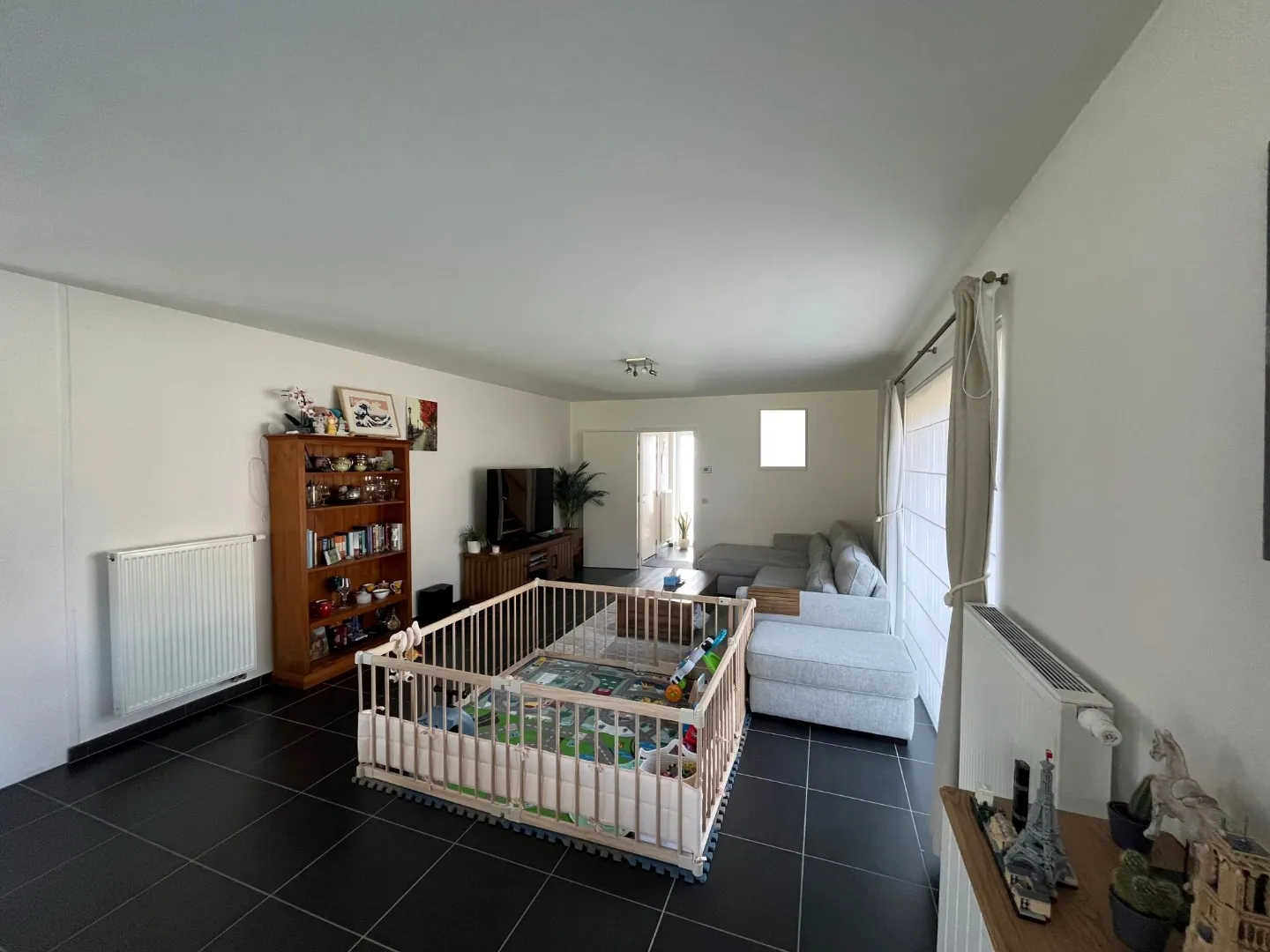 Deze eigentijdse woning is op het gelijkvloers voorzien van een inkomhal met gastentoilet, een ruime leefruimte met open- uitgeruste keuken, een bergruimte en een garage.