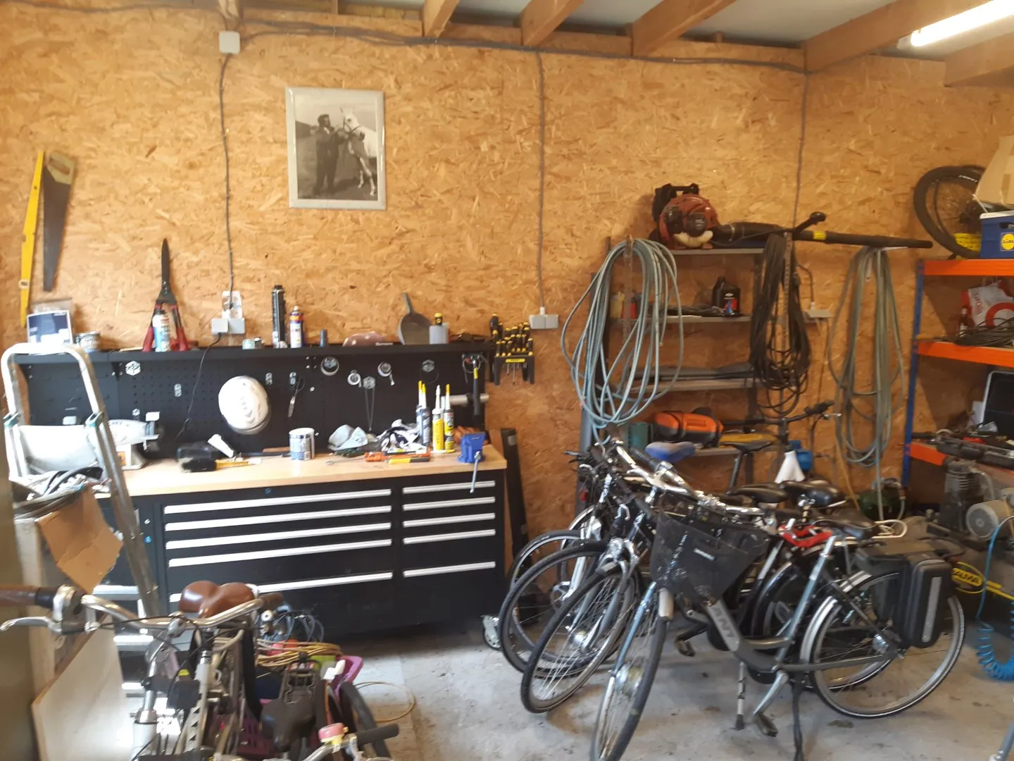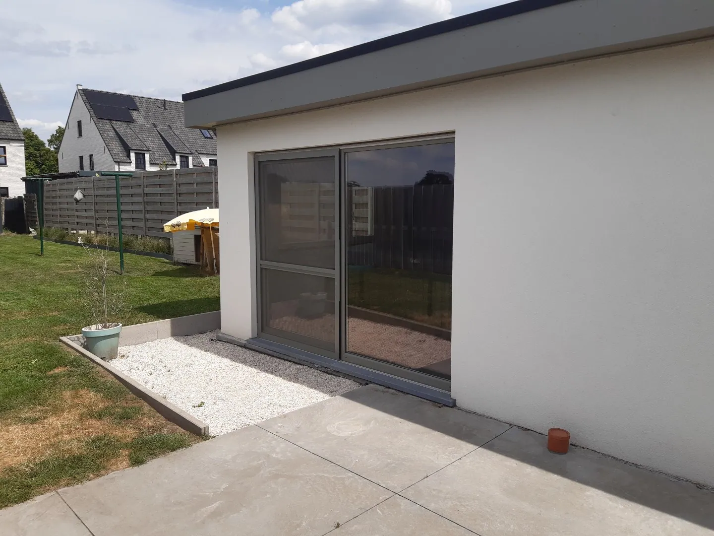 Achteraan in de tuin treffen we een bijkomende praktische ruimte (tuinhuis / atelier).